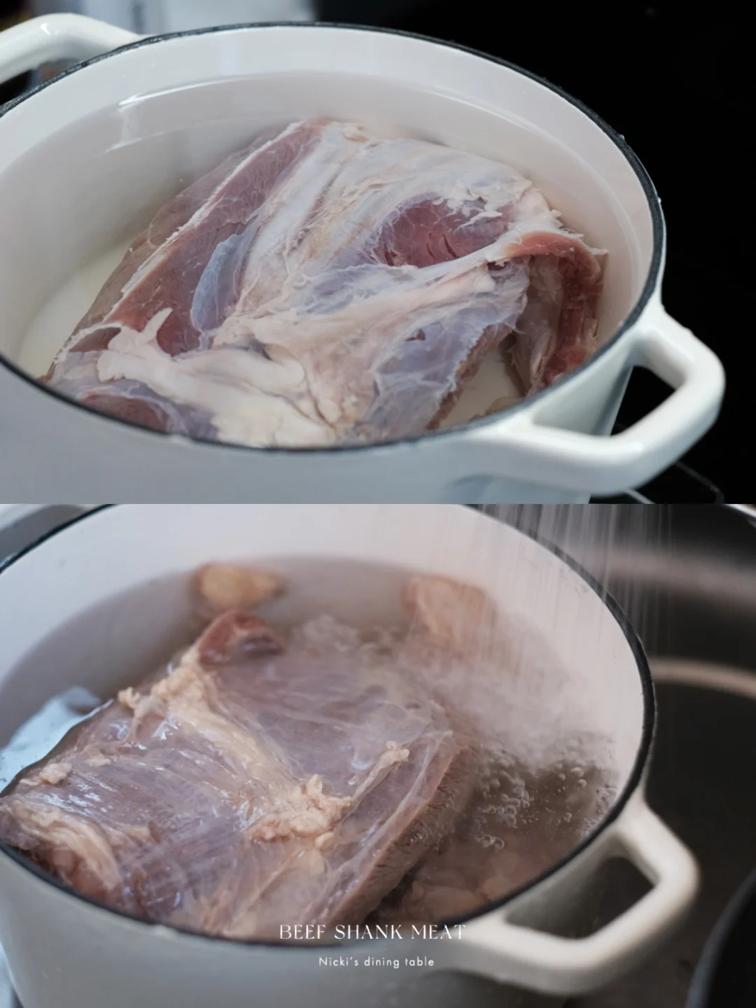 •牛腱子冷水浸泡3小时左右,把血水泡出,期间可以多换几次水。