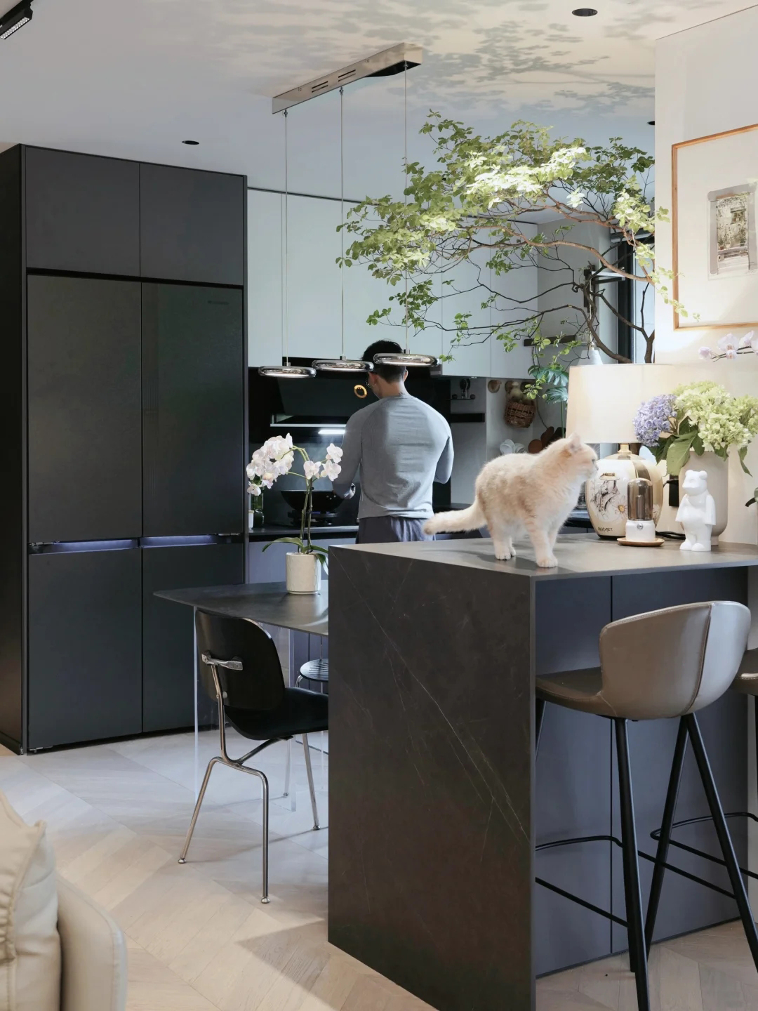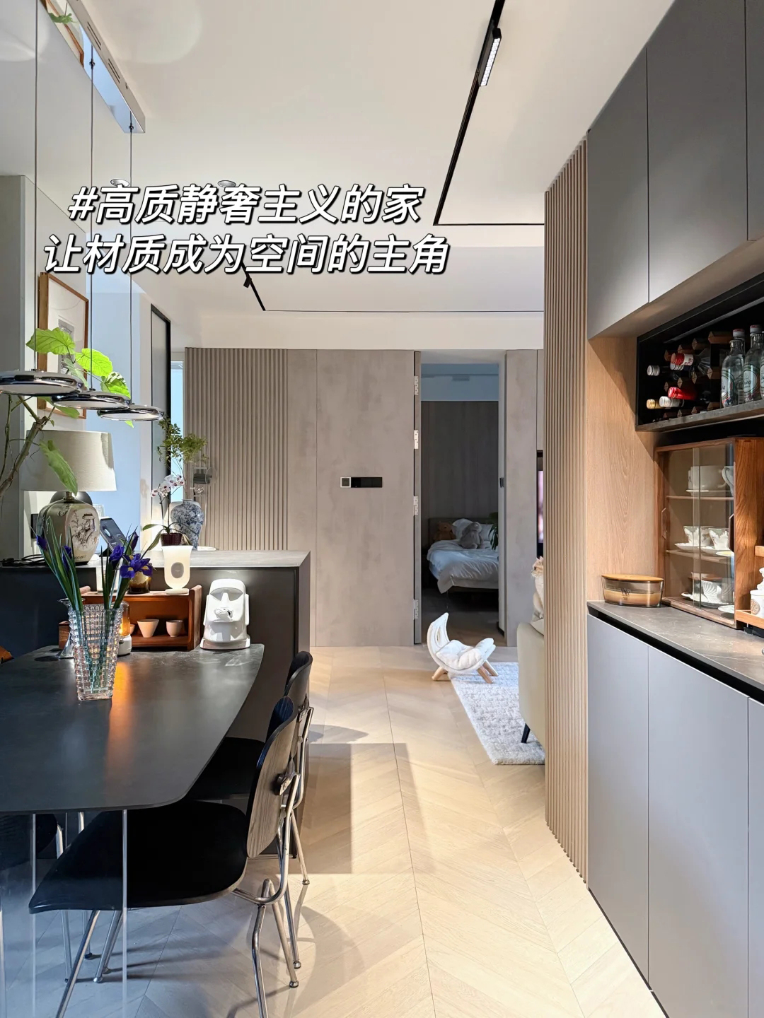 在装修上,全屋采用现代简约风格,以黑白灰为主基调,局部原木色作为点缀,在暖光灯渲染下,让整个空间显得温馨,又不失格调。