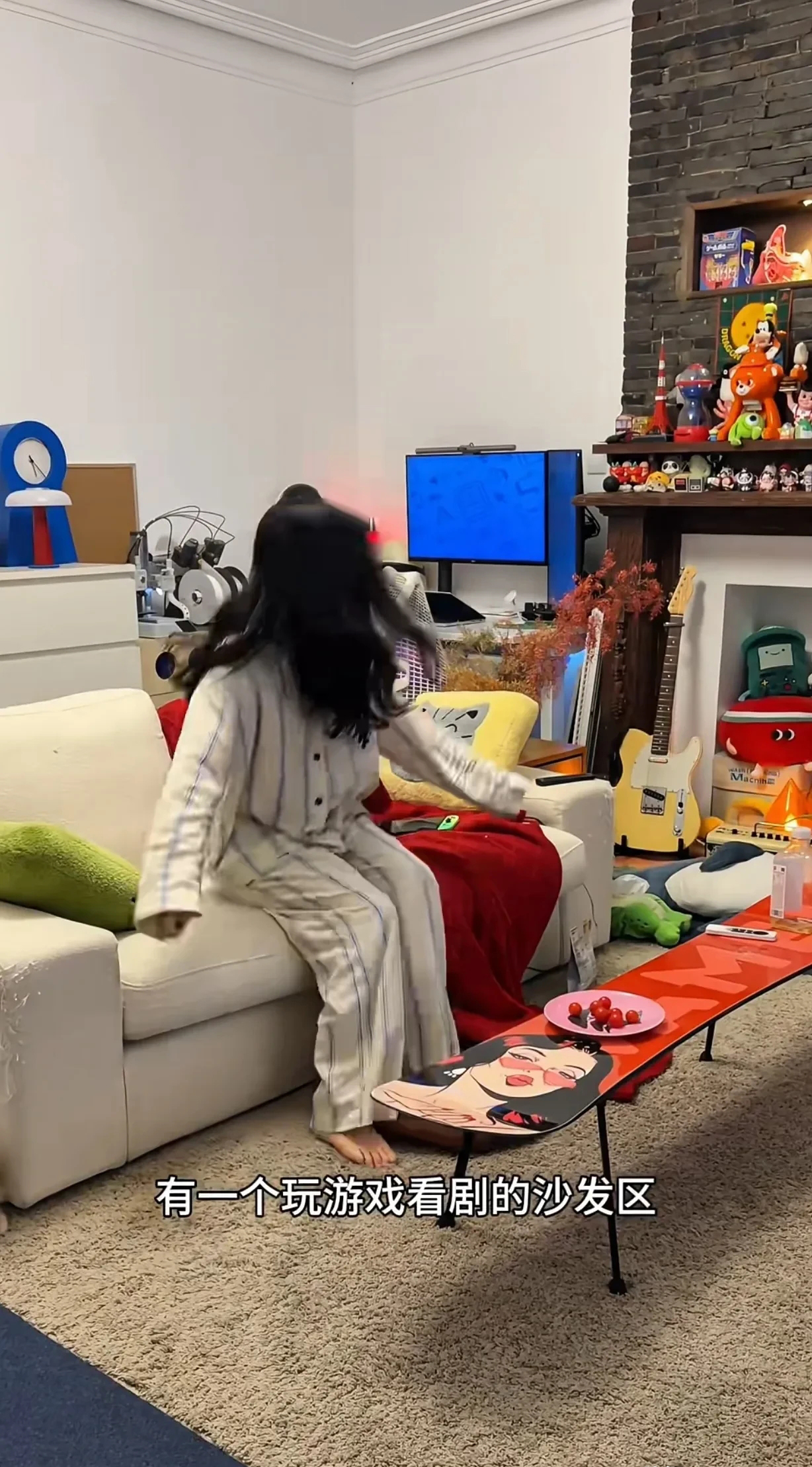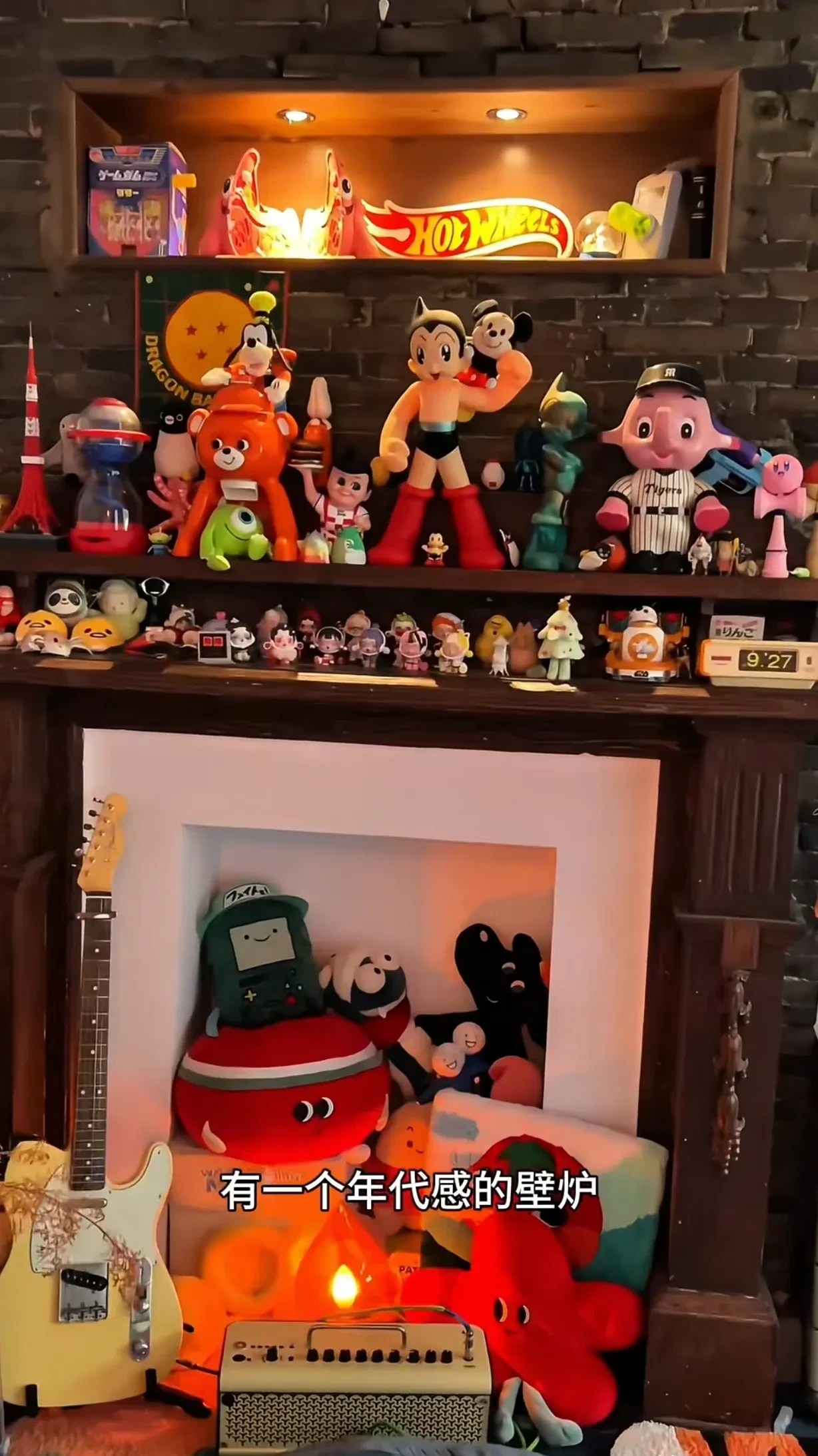 老洋房最大优势就是层高比较高,客厅布置了一组柔软的布艺沙发,搭配颇具年代感的壁炉,让空间的格调瞬间得到提升,下班后躺在这里追剧,太舒服了。