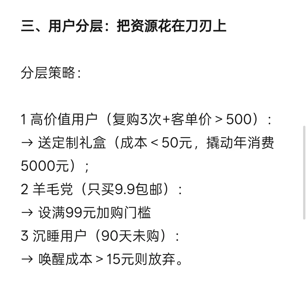 三、用户分层:把资源花在刀刃上