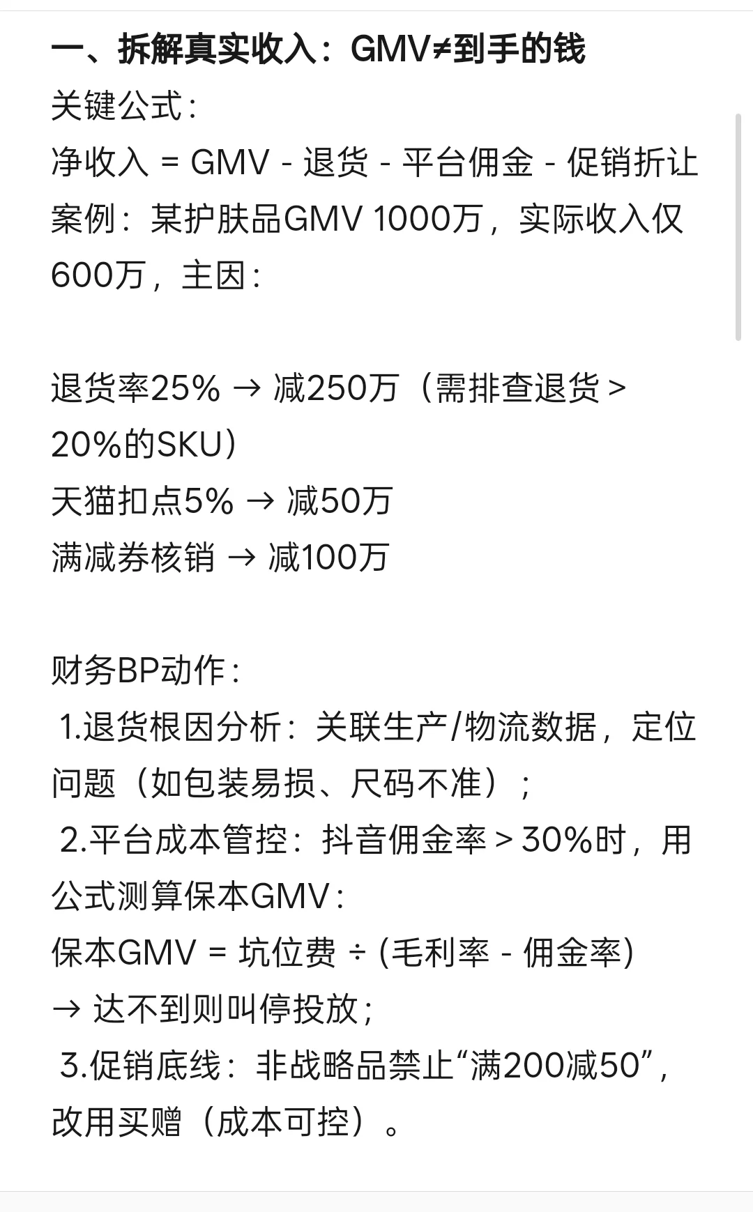 2.平台成本管控:佣金率>30%时,用公式测算保本GMV: