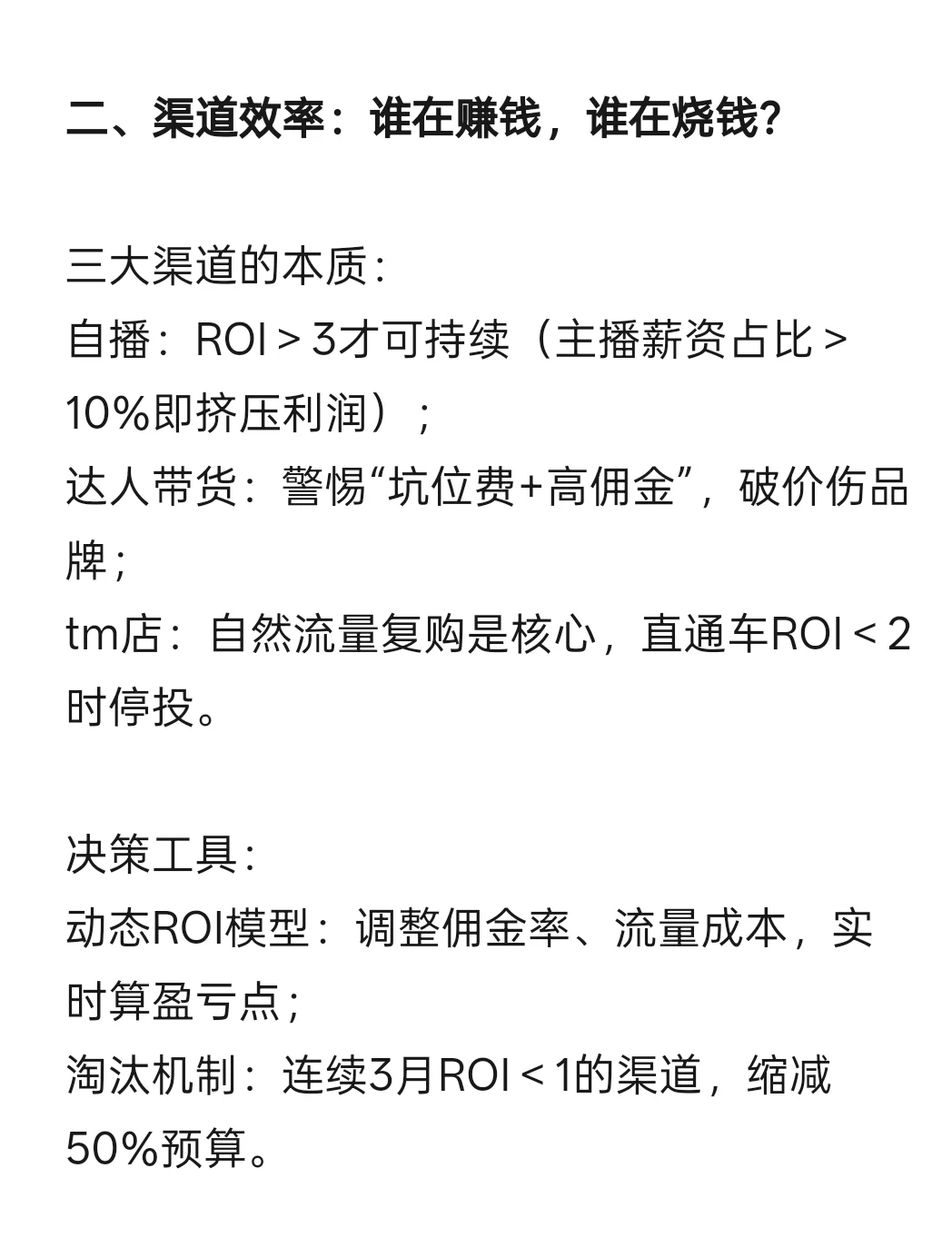 自播:ROI>3才可持续(主播薪资占比>10%即挤压利润);