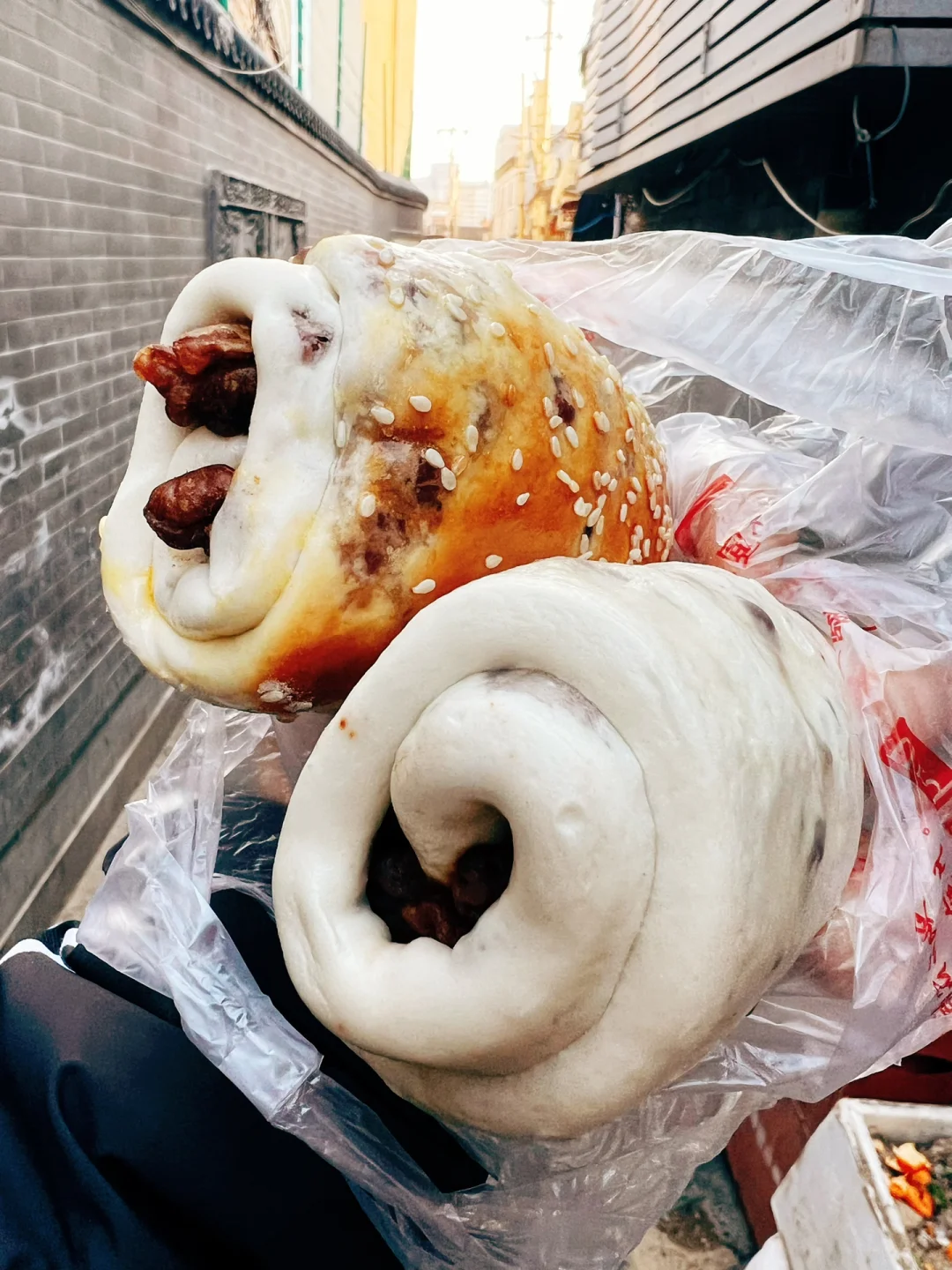 作为胡同里的地标性店铺,不得不说种类越来越多,但口味依旧在线,不踩坑推荐贝勒红豆卷、八宝粘豆包。