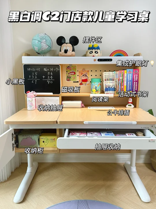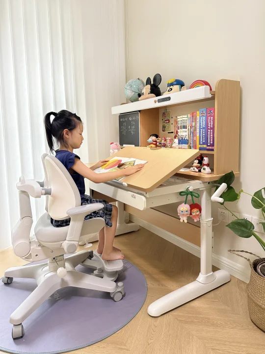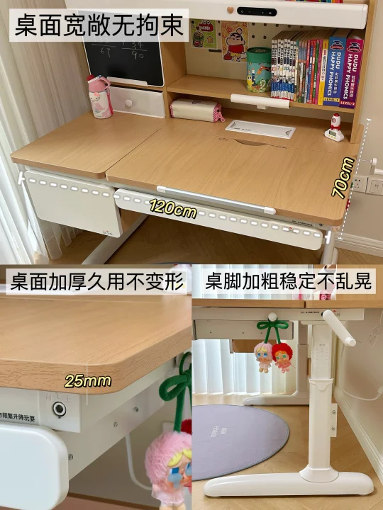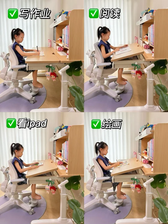 儿子刚上小学的时候,我随便买了个普通小桌子🪑。后来发现📚课本文具堆得满,写字也挤、文具更难找。更焦虑的是…久而久之她坐姿垮总趴桌,老说不听,二年级就有点驼背。学习路还很长,我不敢再将就了。