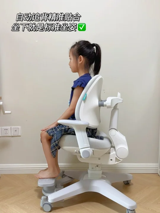 重力感应自动追背,无需手调,再加上可升降的脚踏,椅子选对了孩子坐上去立马形成三个90°标准坐姿✅,支撑感很强,不容易驼背,坐久了也不累屁屁~