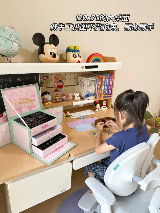 桌椅都能调高度,能从小学用到高中!120x70cm大桌面+0-40°倾斜,读绘本、写作业、画画🎨手工都够用,老母亲偶尔还能拿来当办公桌✌