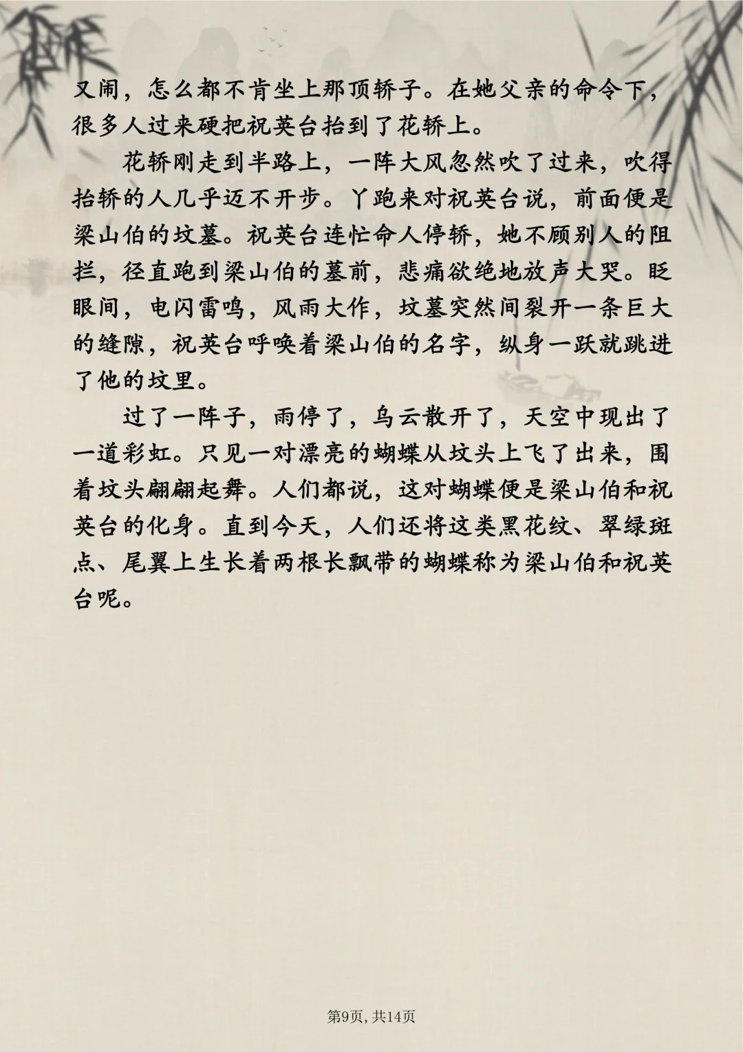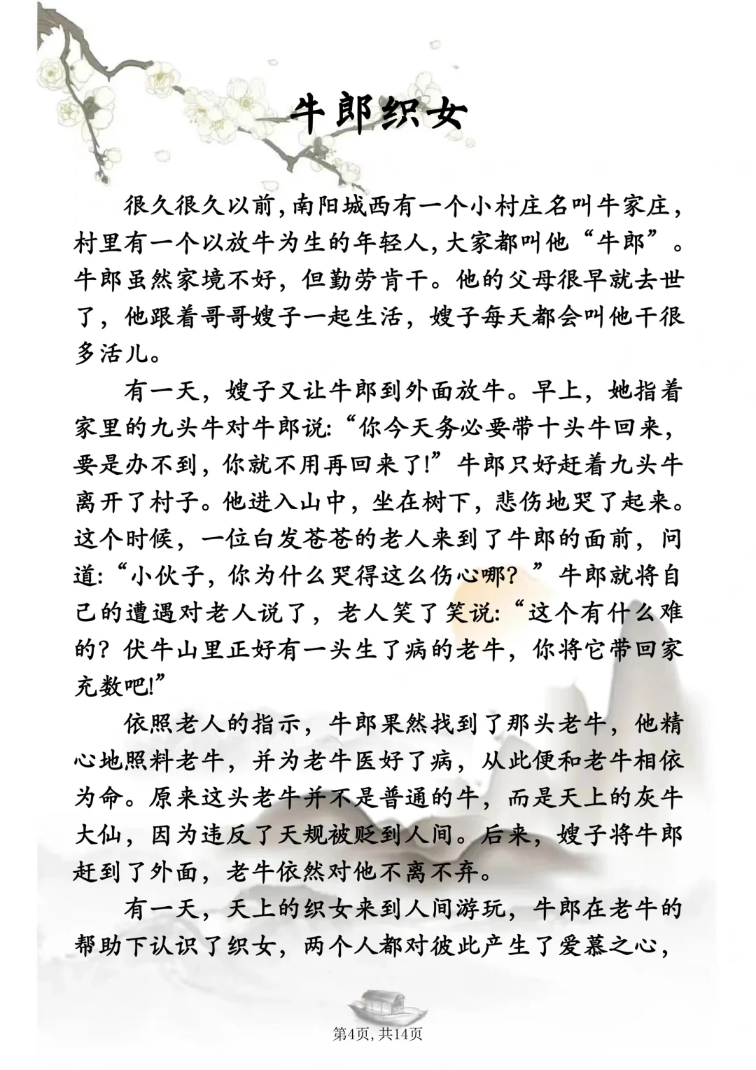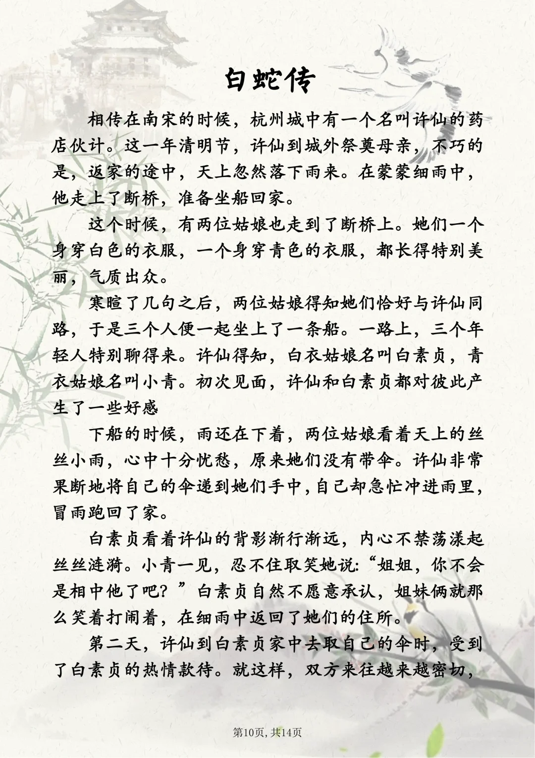 四大民间故事: 《孟姜女哭长城》 《牛郎织女》 《梁山伯与祝英台》 《白蛇传》