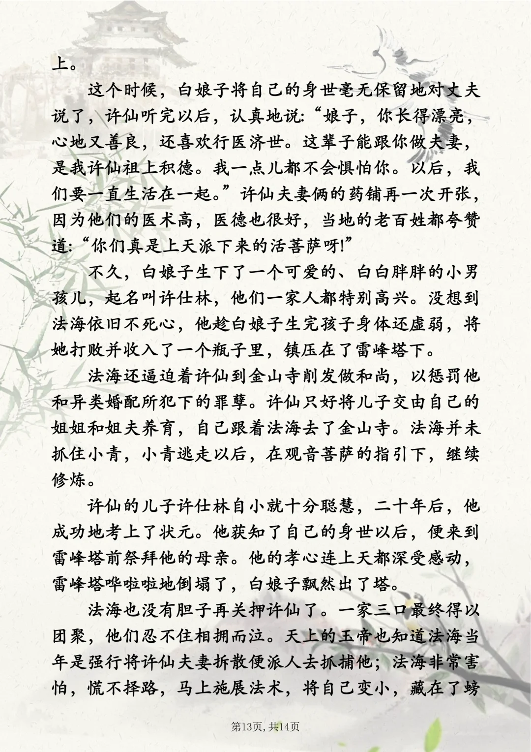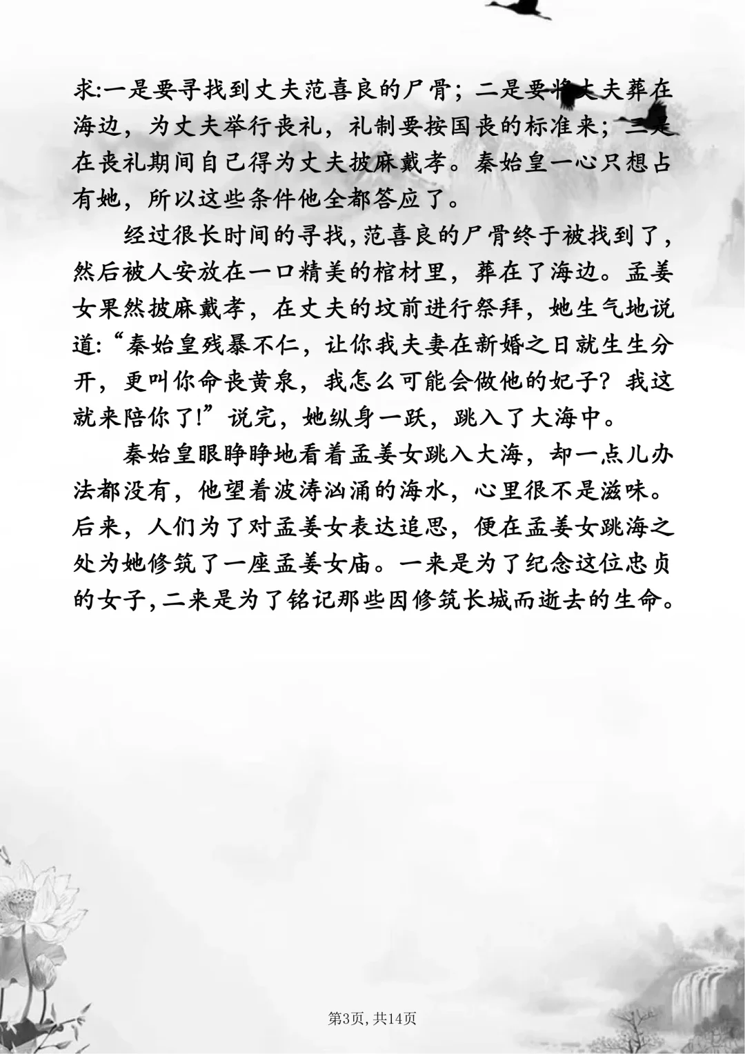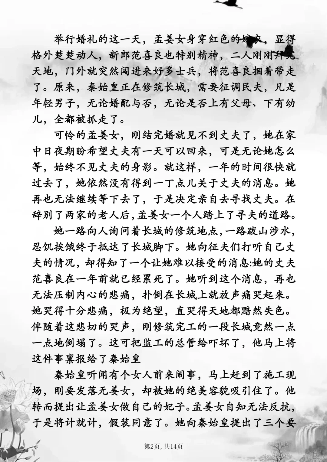 四大民间故事: 《孟姜女哭长城》 《牛郎织女》 《梁山伯与祝英台》 《白蛇传》