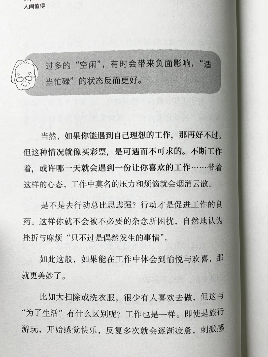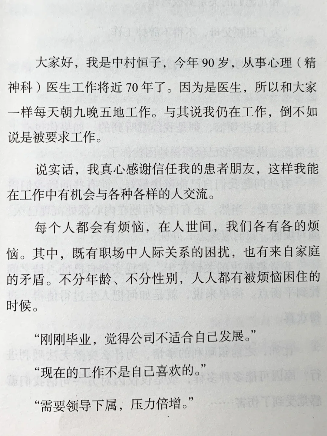 恒子奶奶说,当你面对“为了什么而工作”感到迷茫时,你就干脆而果断地告诉自己“工作只是为了赚钱养活自己而已”。至于“人生价值”“自我成长”之类,是要等自己立足安稳后,在闲暇之余慢慢思考的问题。人生很长,慢慢思考就好了。