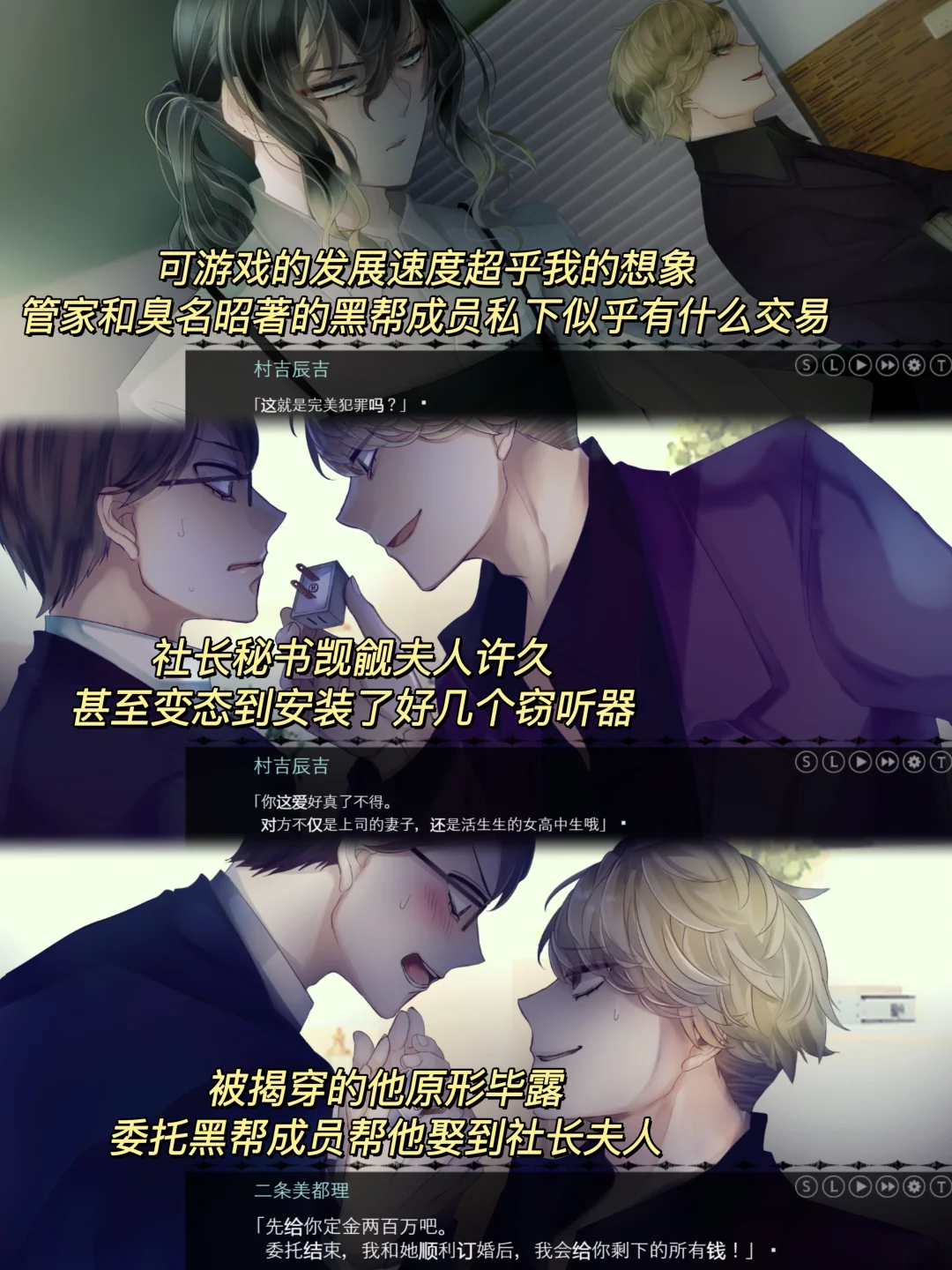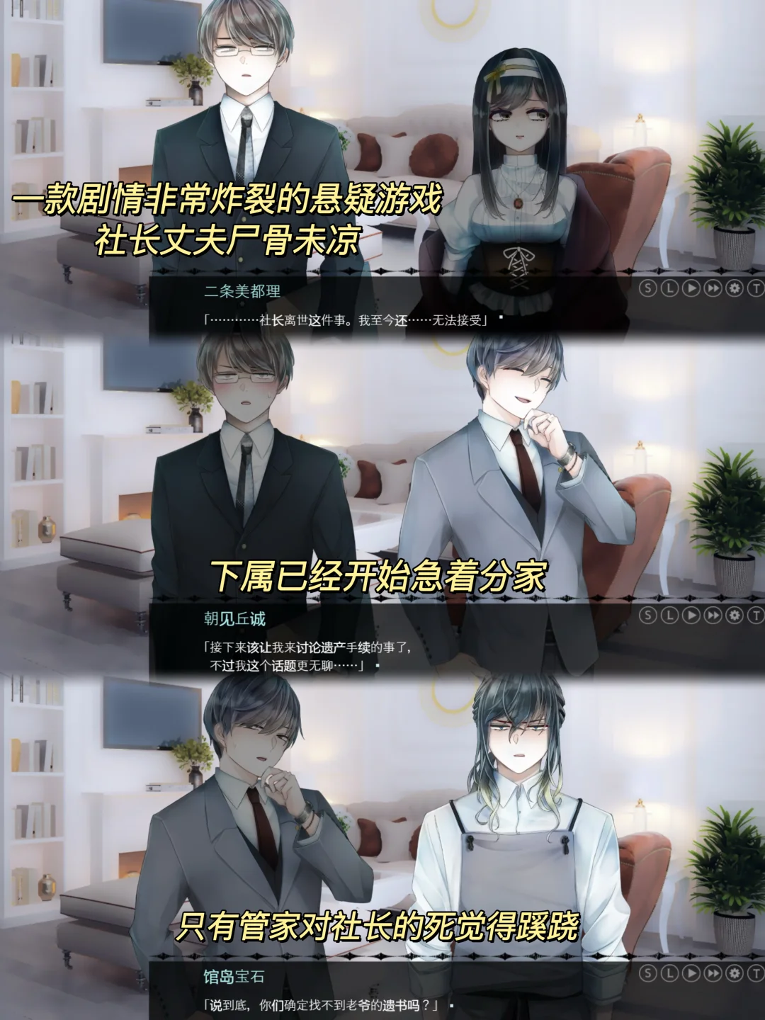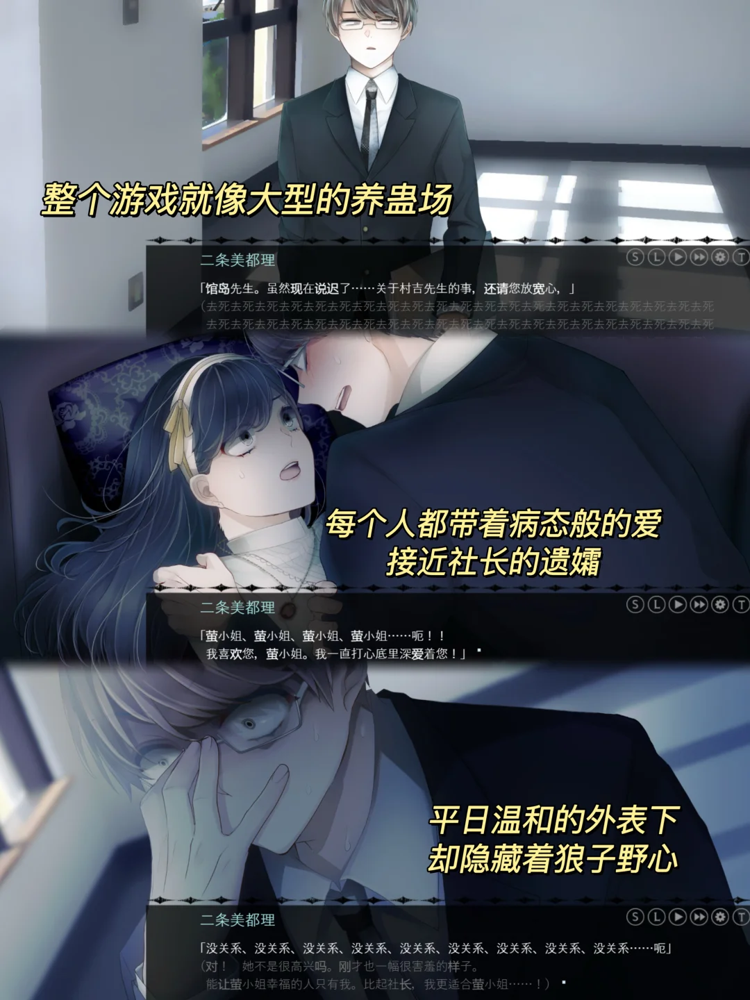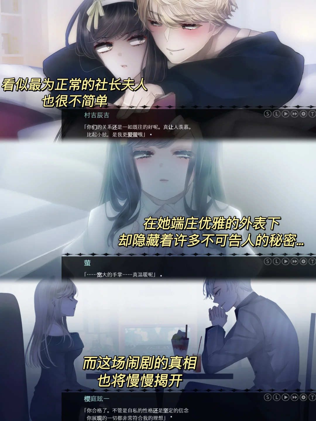 游戏名:《櫻庭邸の邪な幸福》 平台: Pc 游戏简介🎮: - 死去社长丈夫留下了一大堆遗产 而被迫继承的女主成了所有人觊觎的对象 他们都为了自己的利益展开了博弈… 游戏评价📝: - 超级经典的寡妇文学系列,游戏的画风特色真的很棒,而且无法想象这样的游戏竟然是免费的,里面基本没有一个好人,都站在了自己的立场上想要谋取更多的利益…但是不得不说剧情真的蛮颠的,介意的慎入…