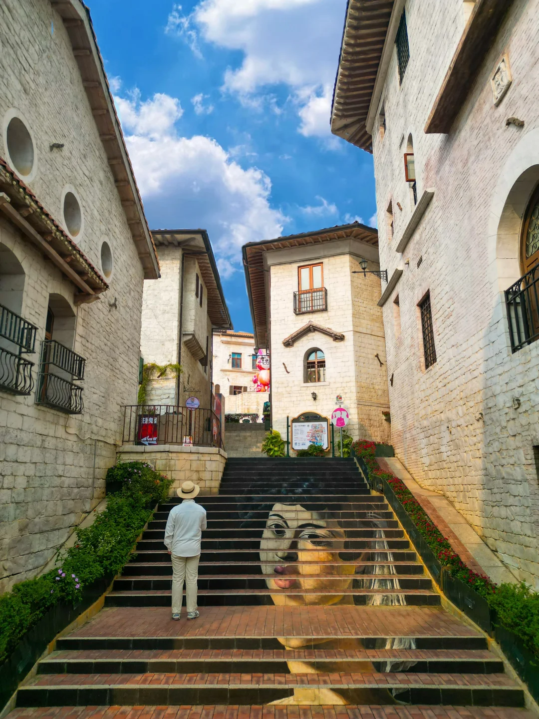 3.地铁站出站口对面栅栏拍雕像很好看,往左走一百米有观景平台,拍人好看