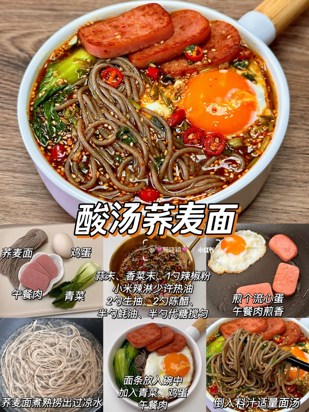 【荞麦面,青菜,低脂午餐肉,鸡蛋】