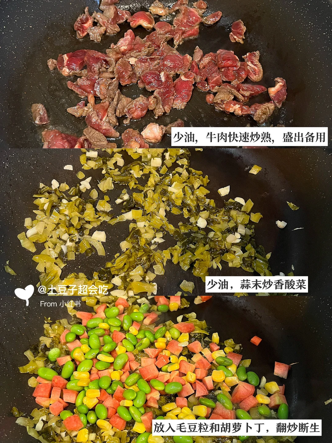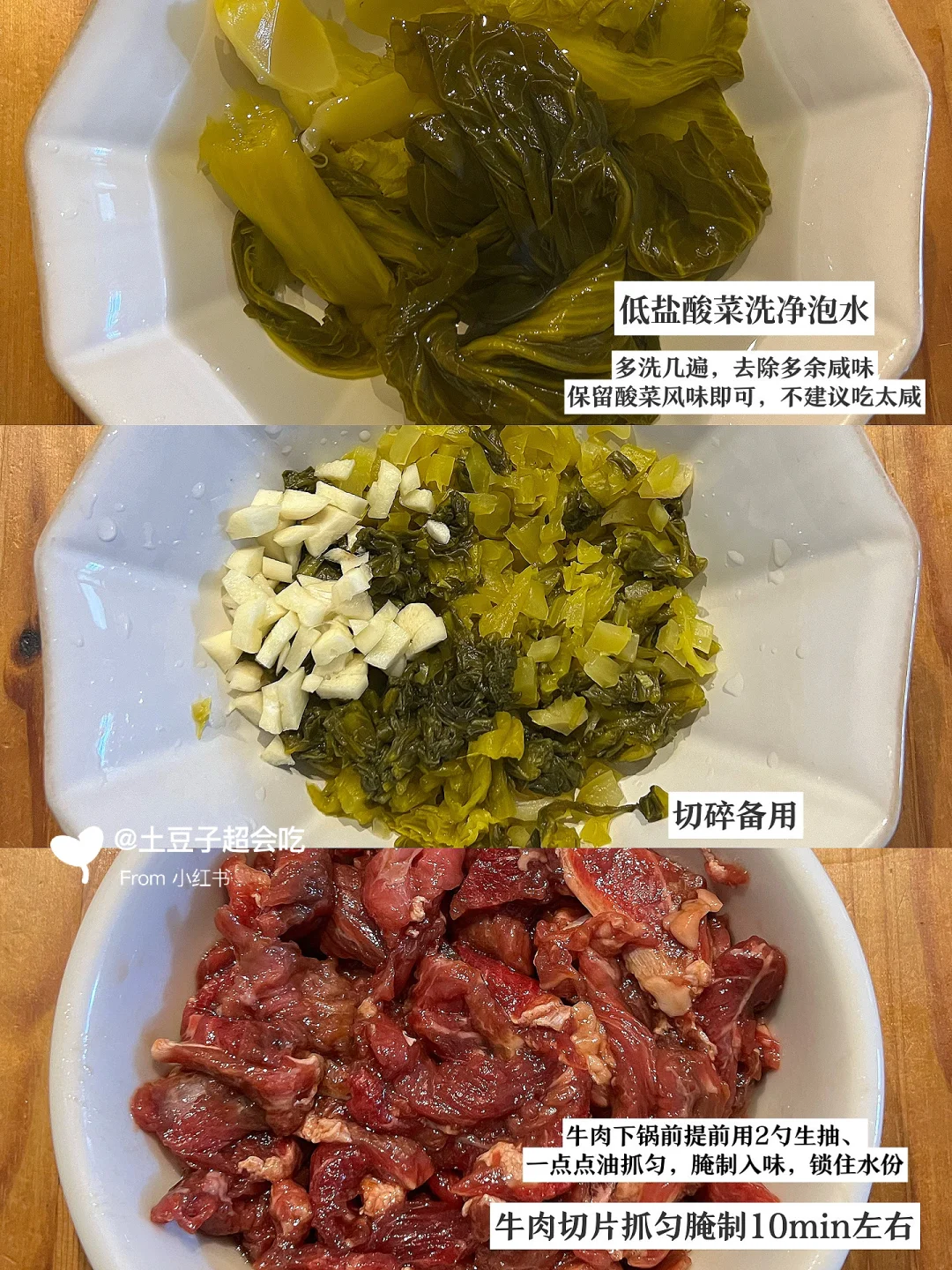 🥩 食材:牛里脊、低盐酸菜、毛豆、胡萝卜、大蒜