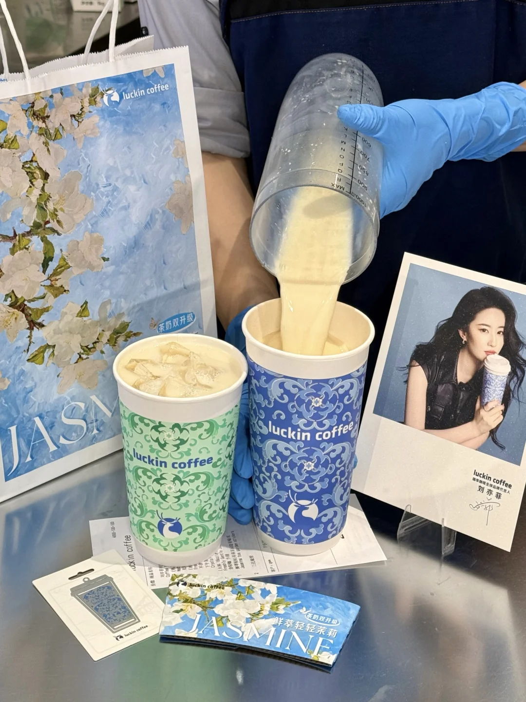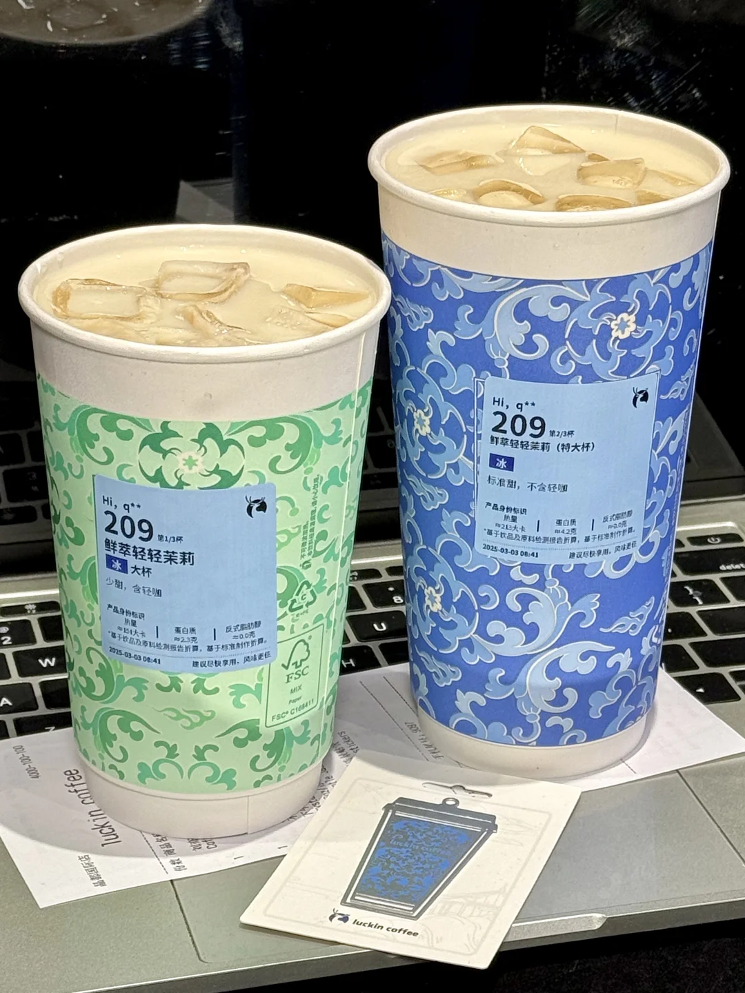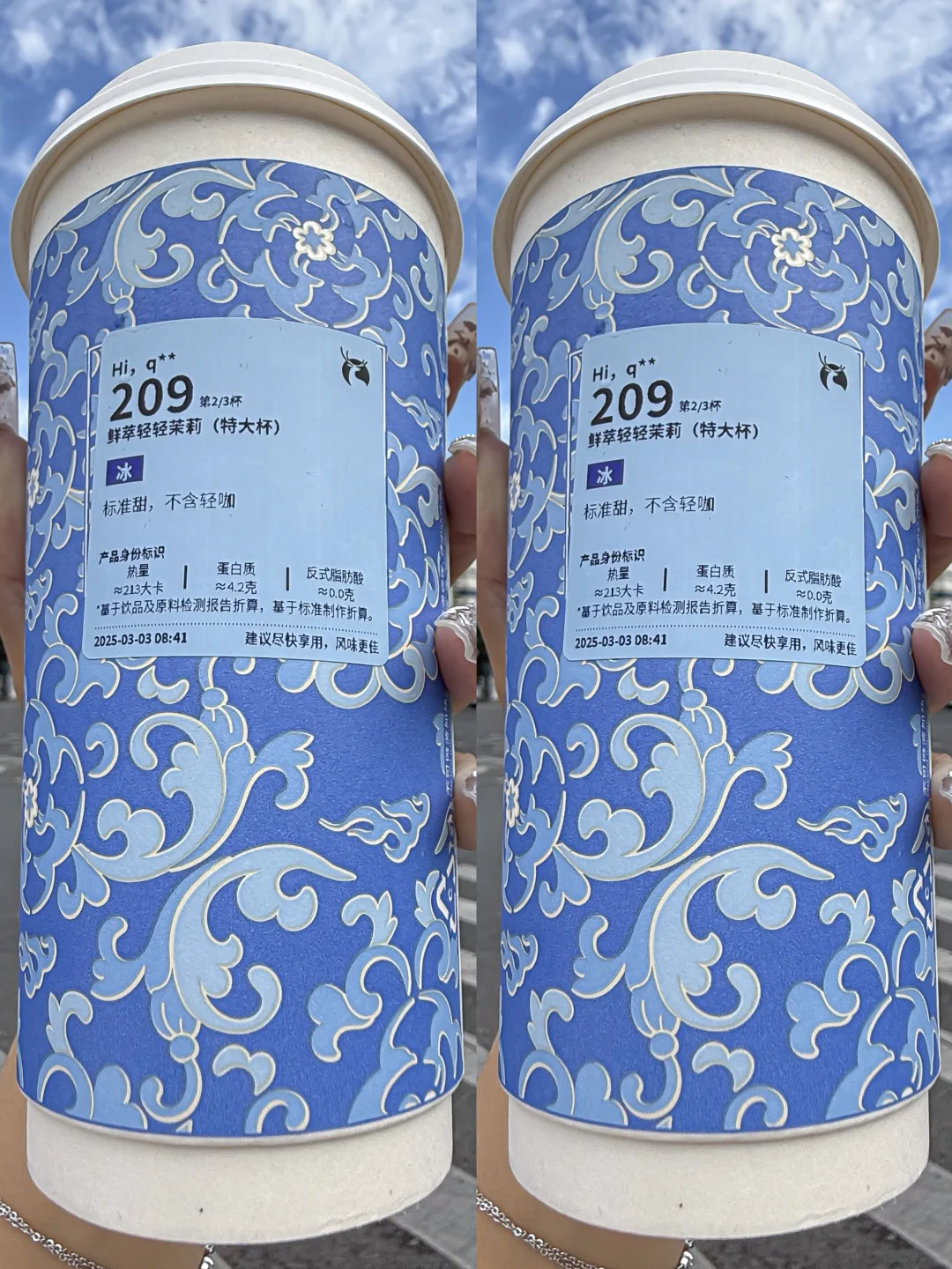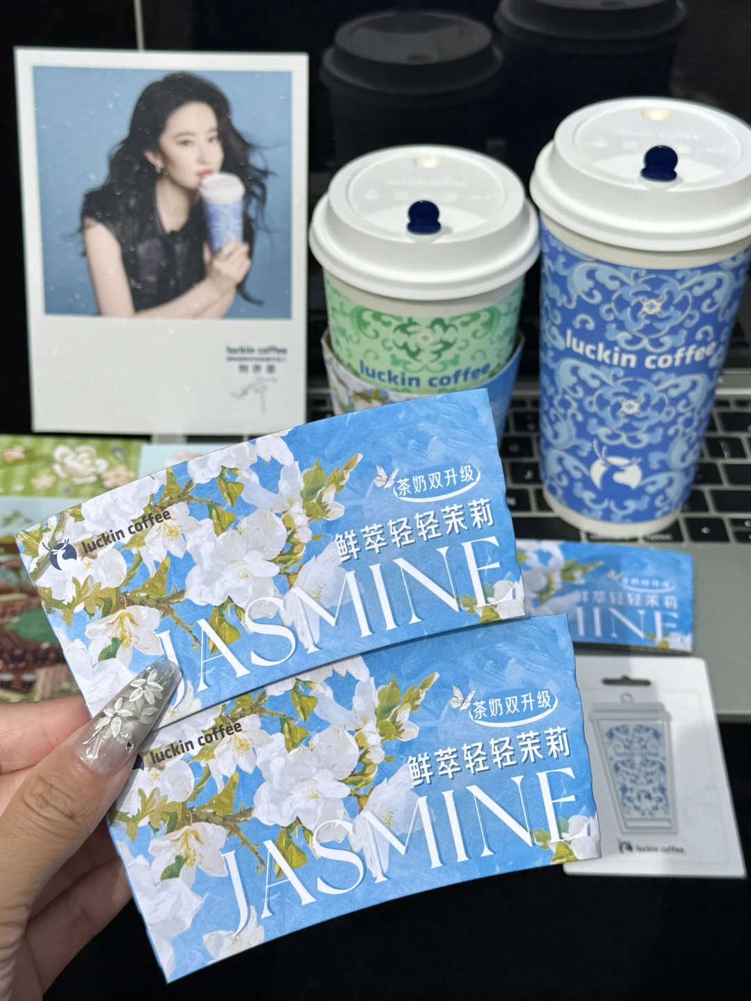 所有人听令!速速去喝鲜萃轻轻茉莉! 这次的升级版真的很绝!!入口茉莉奶香直接360℃环绕!!! 感觉喝完可以亲十个crush的嘴巴 亲测超好喝,而是相当完美的味道!! 本人真的爱惨了🤤🤤轻轻的很健康的感觉 鲜萃升级➕真茶现泡0茶粉➕100%动物乳脂 0️⃣植脂末0️⃣植物油 大杯热量还不到100kcal!!! 点单tips: 鲜萃轻轻茉莉 超大杯➕标准甜 鲜萃轻轻茉莉 大杯➕少甜/标准甜 无敌清新嘎嘎香!!切记不要点不另外加糖! 还有刘亦菲明信片书签、茉莉茶园造景贴纸、纸袋和杯套!两杯就能全部拿下✌️好感度拉满~