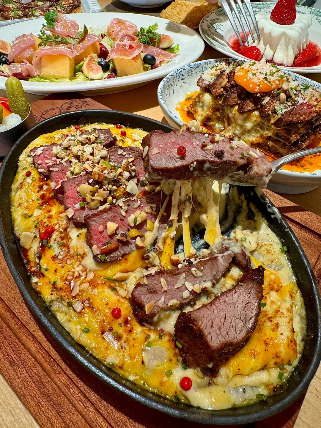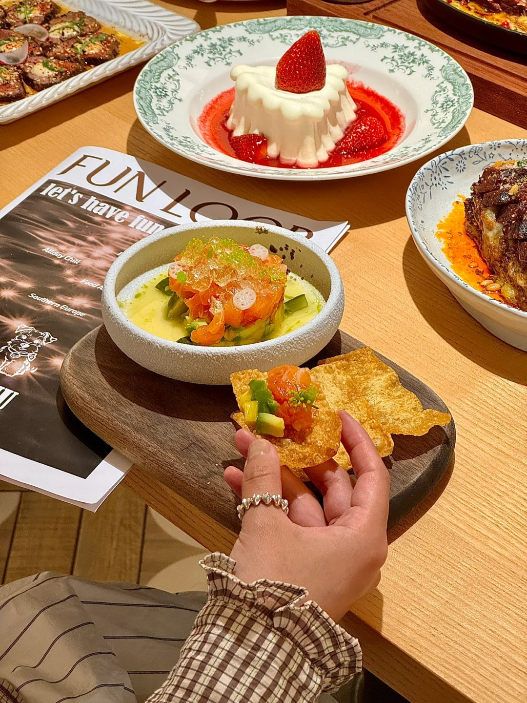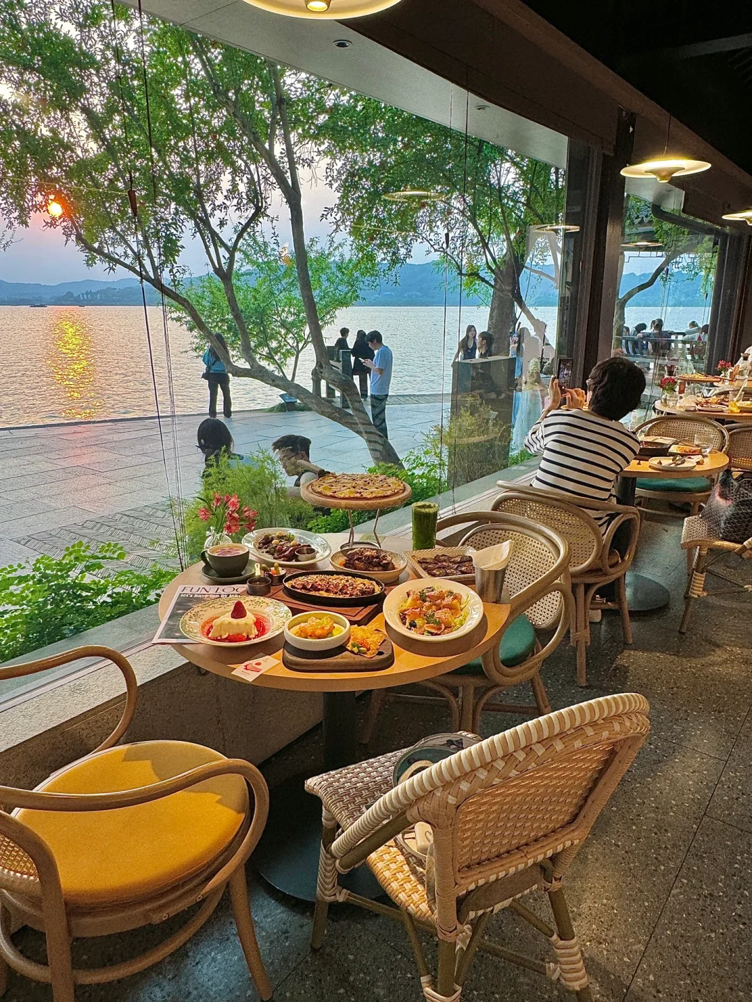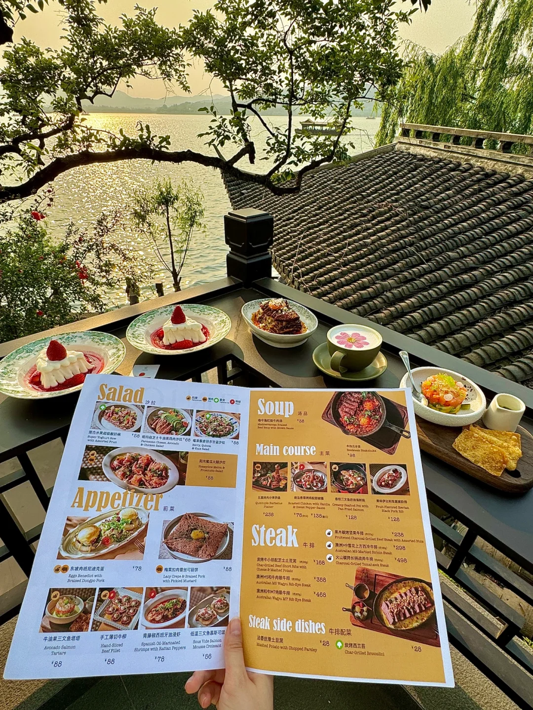 绝美西湖观景brunch!!! Funloop🥂人均100+的南欧菜好好吃🤤 独栋三层楼🏡我坠喜欢一楼靠窗位 有整面落地窗! 二三楼的景观位也很不错👌随便怎么拍都美! 他家的菜品也都很好吃…炭烤牛小排配芝士土豆泥🥔油泼辣子牛排千层面🍝牛油果三文鱼塔塔🥑莓果瀑布慕斯🍰阳光蜜瓜火腿沙拉🍈