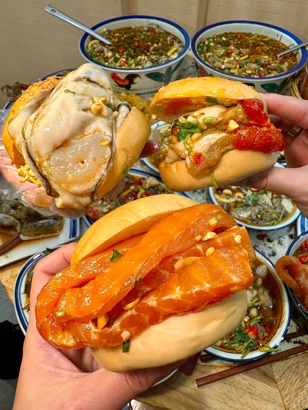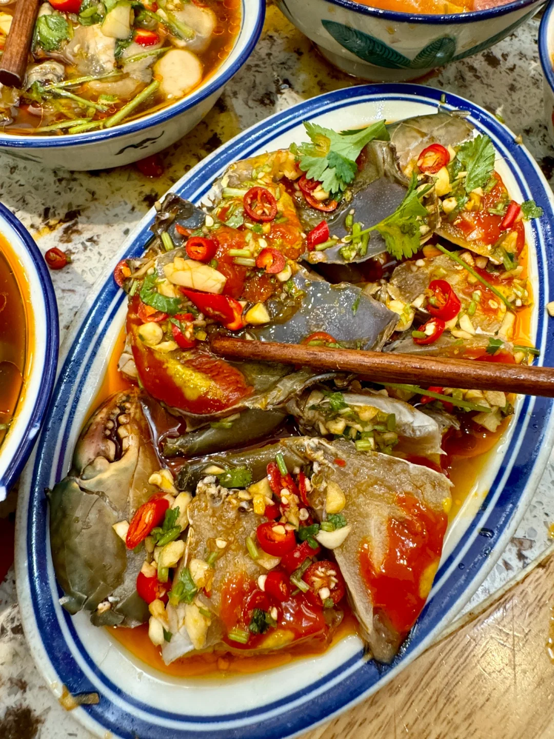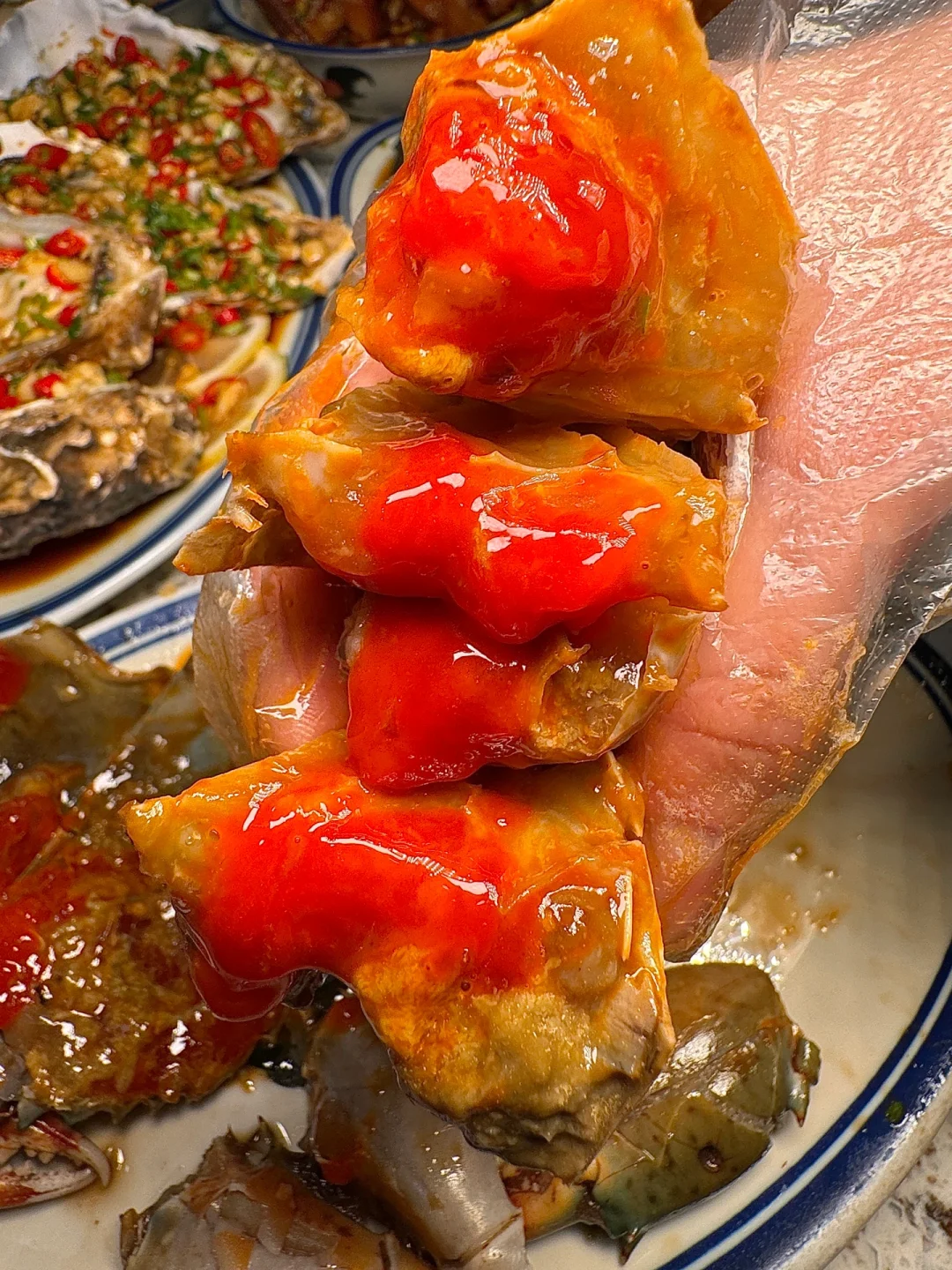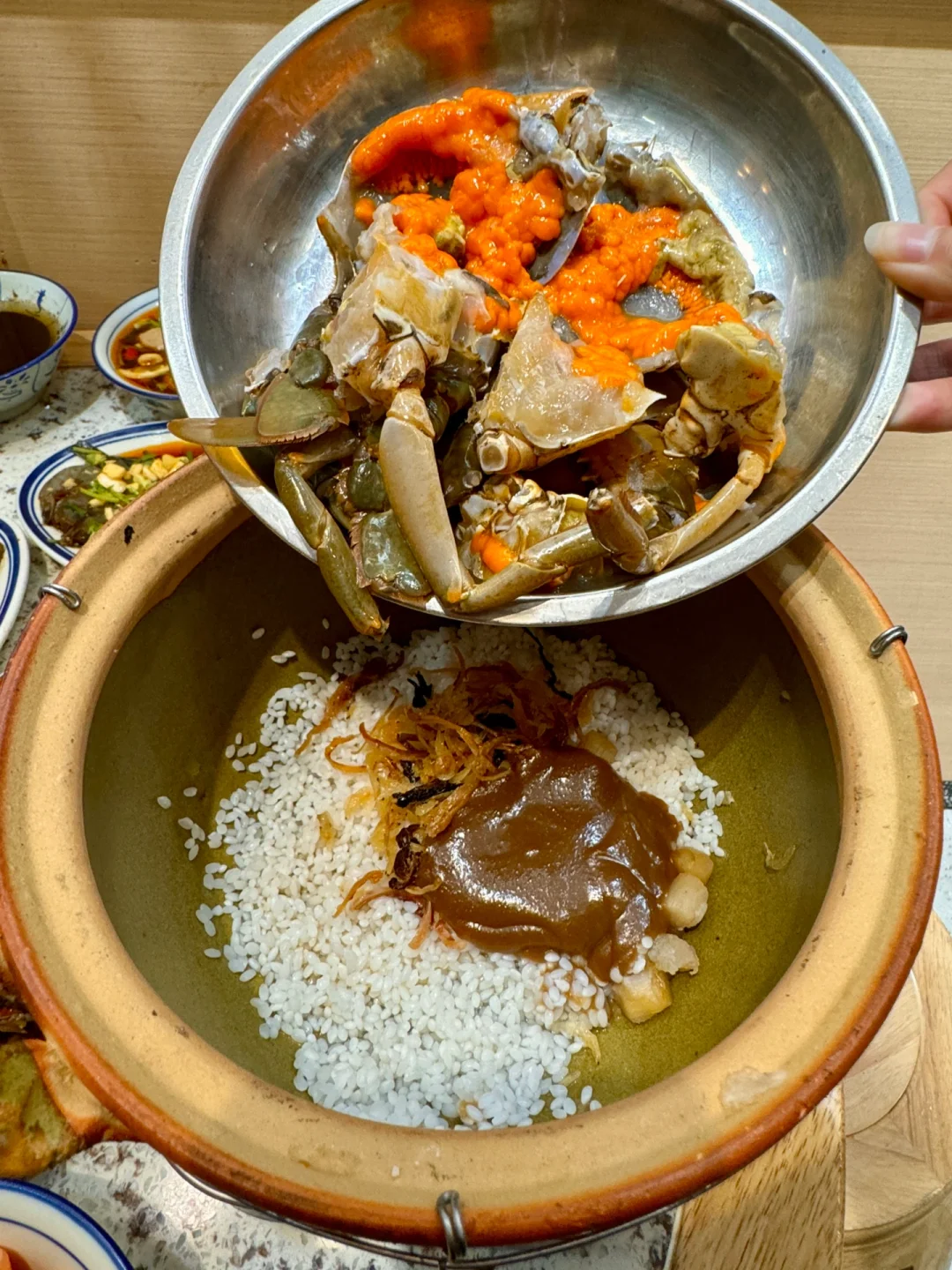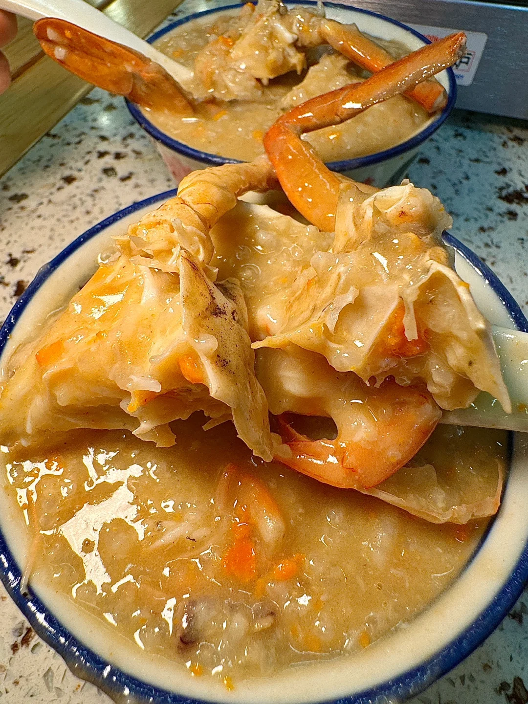杭州居然也能吃到这么正宗的潮汕生腌诶!!! 生腌的种类好多!膏蟹、皮皮虾、生蚝、三文鱼🍣 还吃到了现熬的膏蟹鲜虾粥🥣真的鲜掉眉毛了!