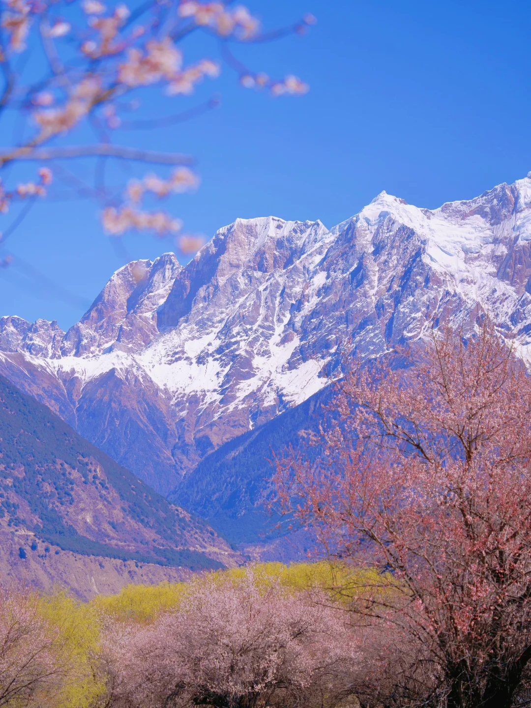 ✅雅鲁藏布大峡谷:一直被网友评为地球最后的净土,可以拍到桃花和雪山同框,运气好的话还能看到日照金山,在观景台瞭望南迦巴瓦峰,怎么拍都是大片;
