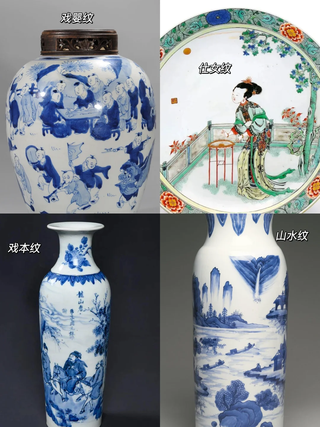人物方面,佛教相关不再流行,转而,更多的儿童、仕女、神仙形象和戏本故事出现在了器物上。