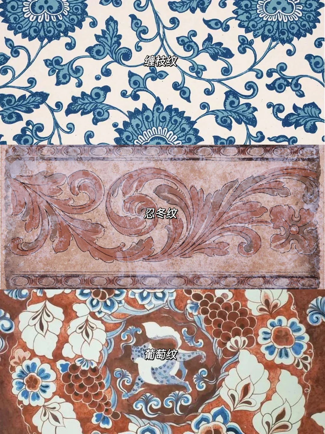 🪷从魏晋南北朝到隋唐,植物纹发展最快,象征生生不息的缠枝纹、代表佛教符号的莲花纹、寓意永不凋零的忍冬纹、随丝绸之路而来的葡萄纹,都竞相展现出曼妙灵动之美。