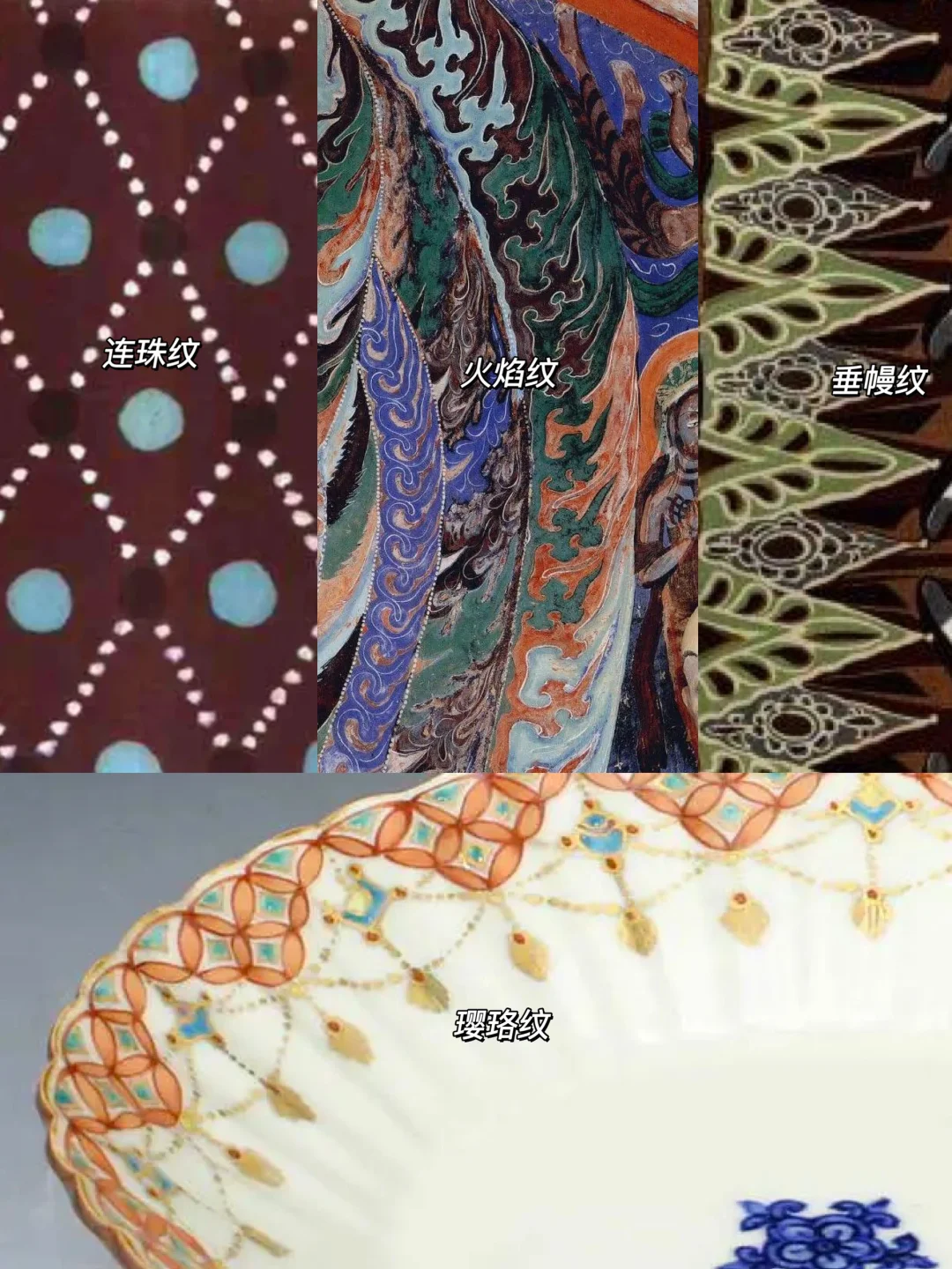 此外,还有火焰纹、连珠纹、璎珞纹、垂幔纹等装饰,也与佛教有着紧密关系。