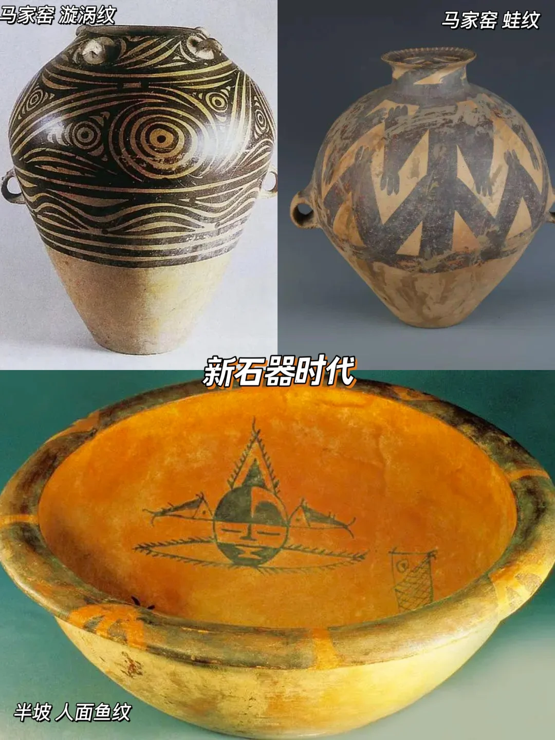 🏺新石器时代出土的陶器上,有许多几何纹样,像三角、网格、波浪、圆圈等,比较特别的是旋涡纹,据推测可能为水的象征。