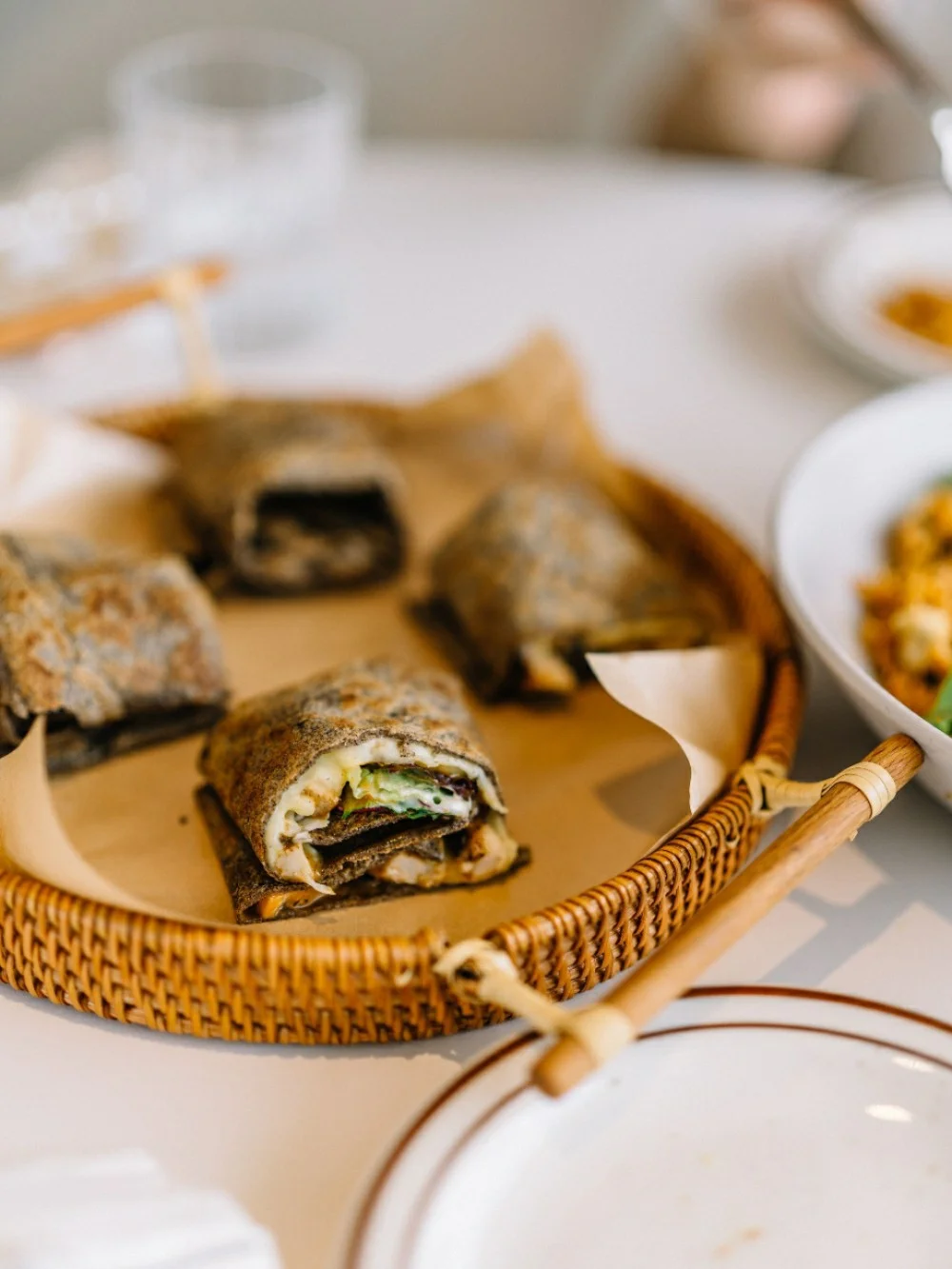 这个饼可以切开卷起来或者平铺,据说平铺拍照会更好看,但是切开卷起来吃更方便。