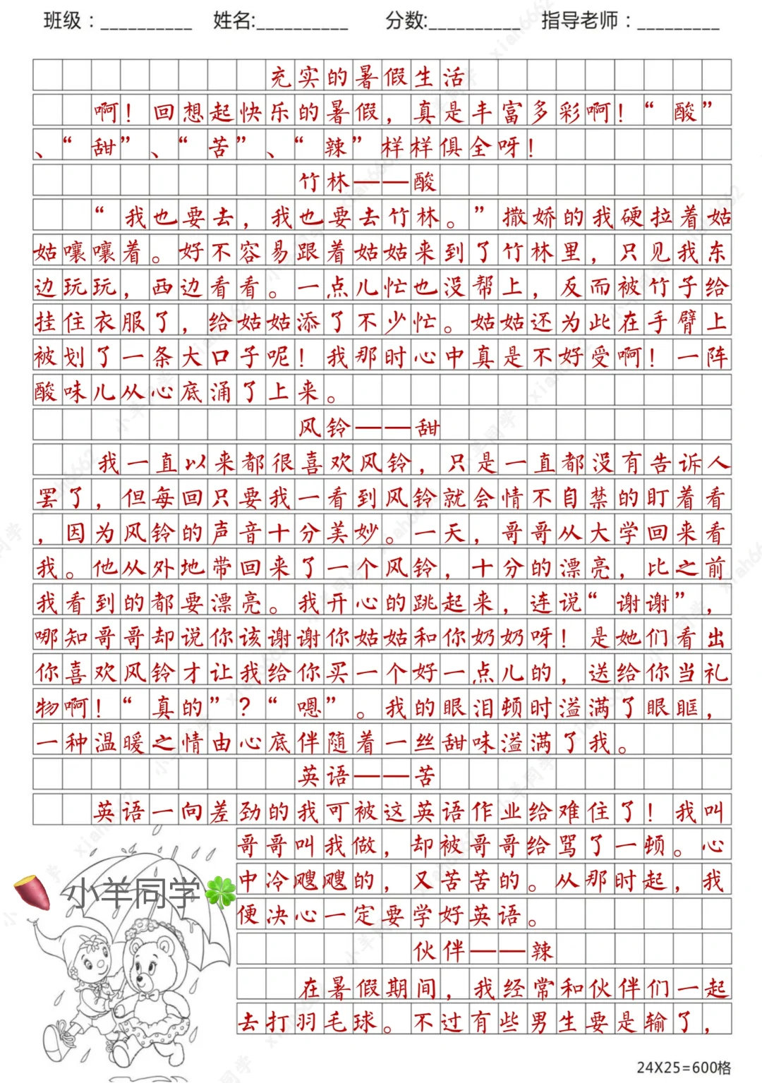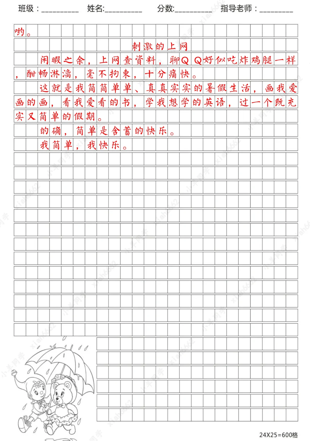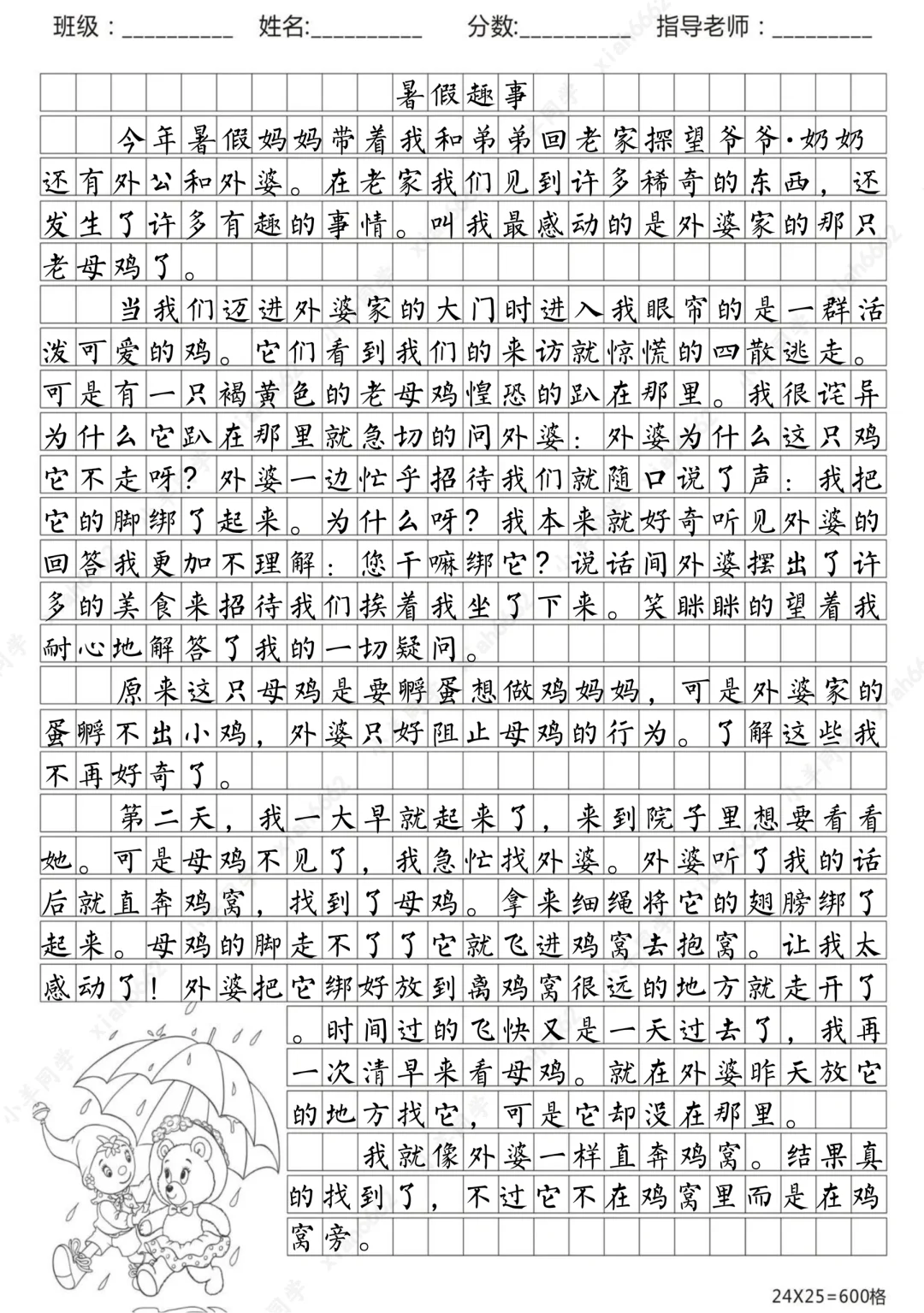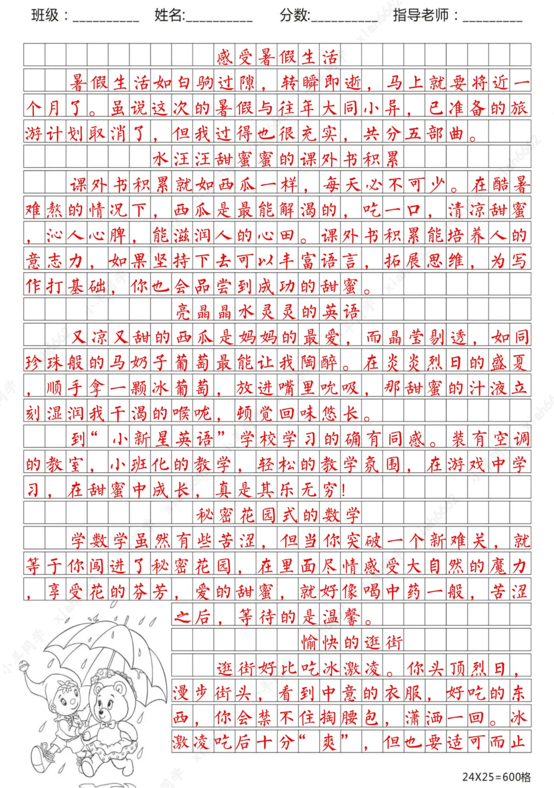 小学暑假作文【400-700字】
