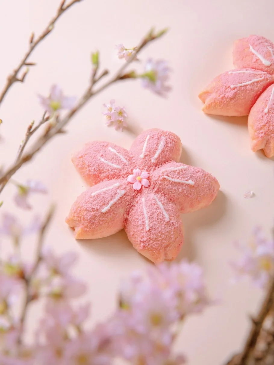 🌸 春日樱花白桃软欧包:樱花外形,松软有嚼劲,包裹白桃馅料,一口咬开春天的味道。而且低油低脂低盐哦。