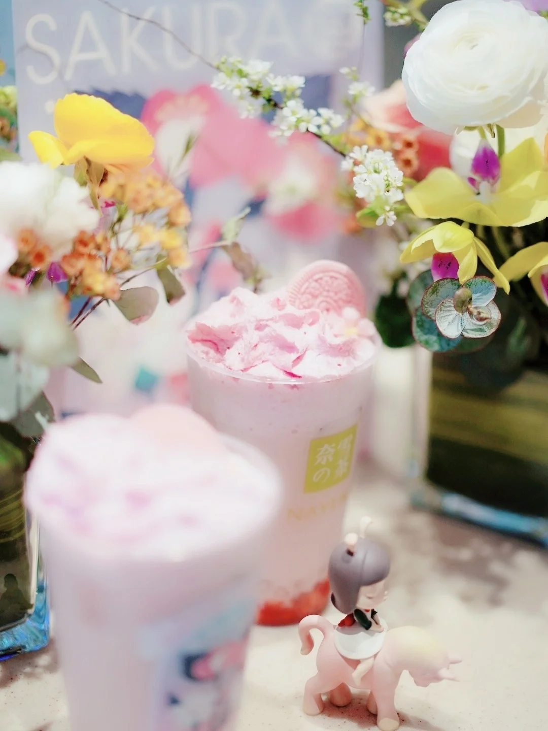 🌸樱花季来咯,让味蕾和视觉都充满粉嫩樱花的感觉吧!奈雪最近上的樱花季太可了!粉粉嫩嫩的颜色,还有樱花饼干飘落,满满少女心!