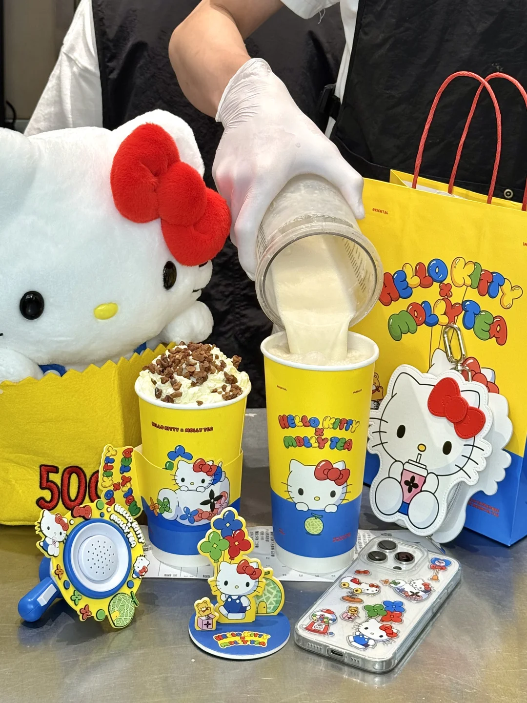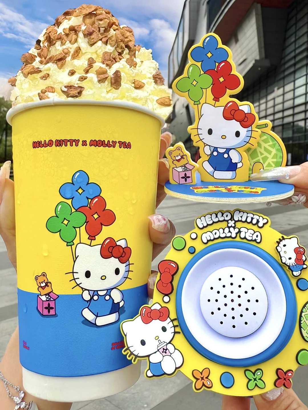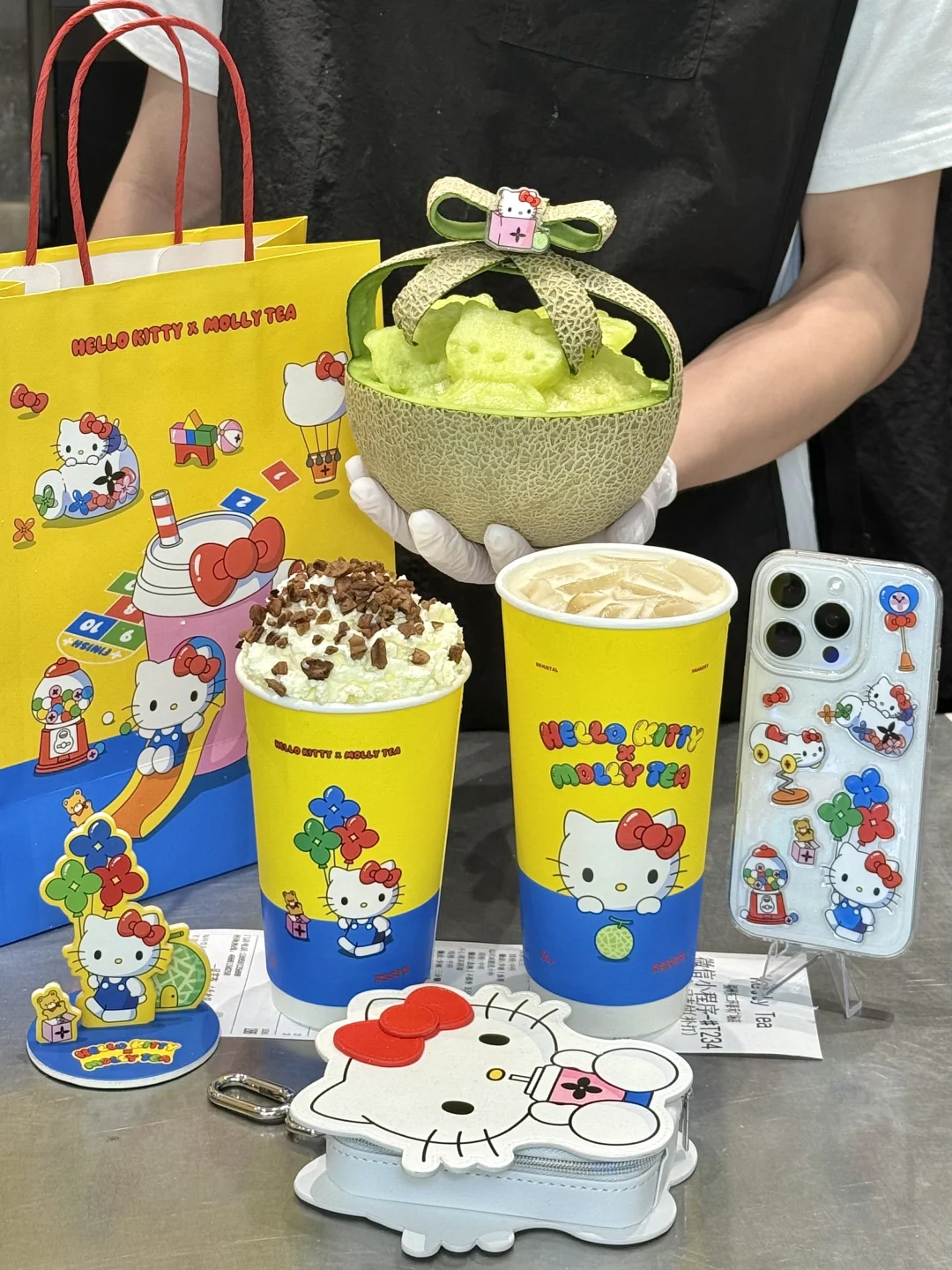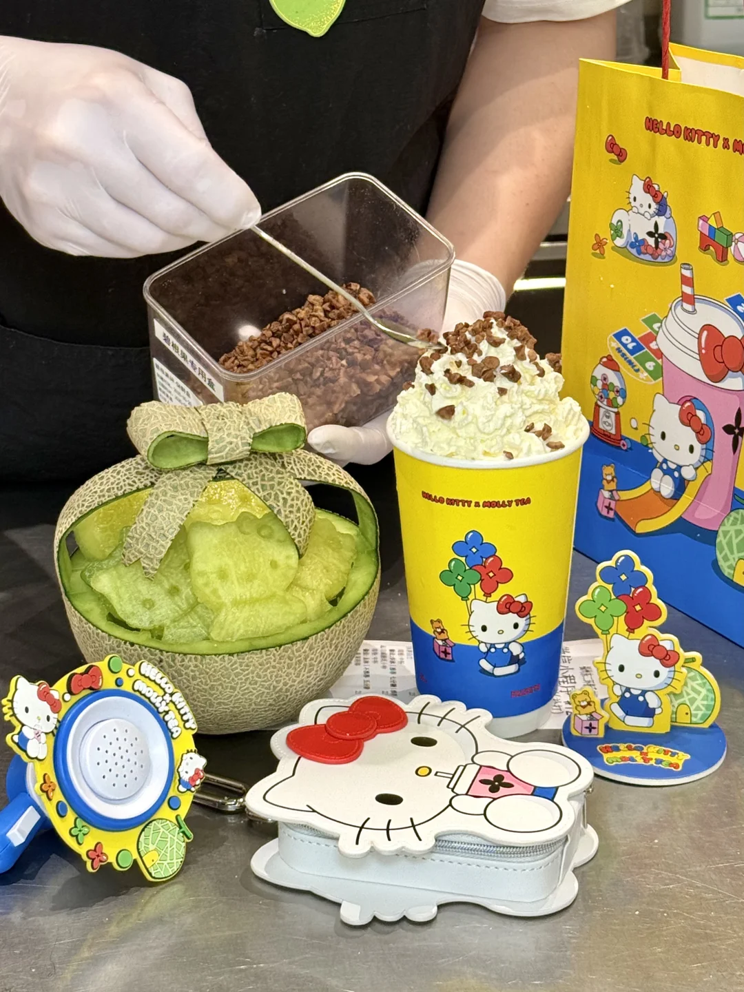 是真的!!茉莉奶白和HelloKitty联动! 有HelloKitty联名小喇叭、零钱包、香卡立牌、贴纸、杯套、主题杯和主题袋…都好可爱啊!!! 玫珑瓜瓜乐!好喝的无法用言语形容。。 茶叶本身自带玫珑果香!口感吼清爽不会涩,感觉抱着玫珑瓜生啃一口爆汁!!!沁甜感冲天灵盖!果香茶香奶香层层递进!!清爽又低卡,一口穿越到海南的玫珑瓜田🍈