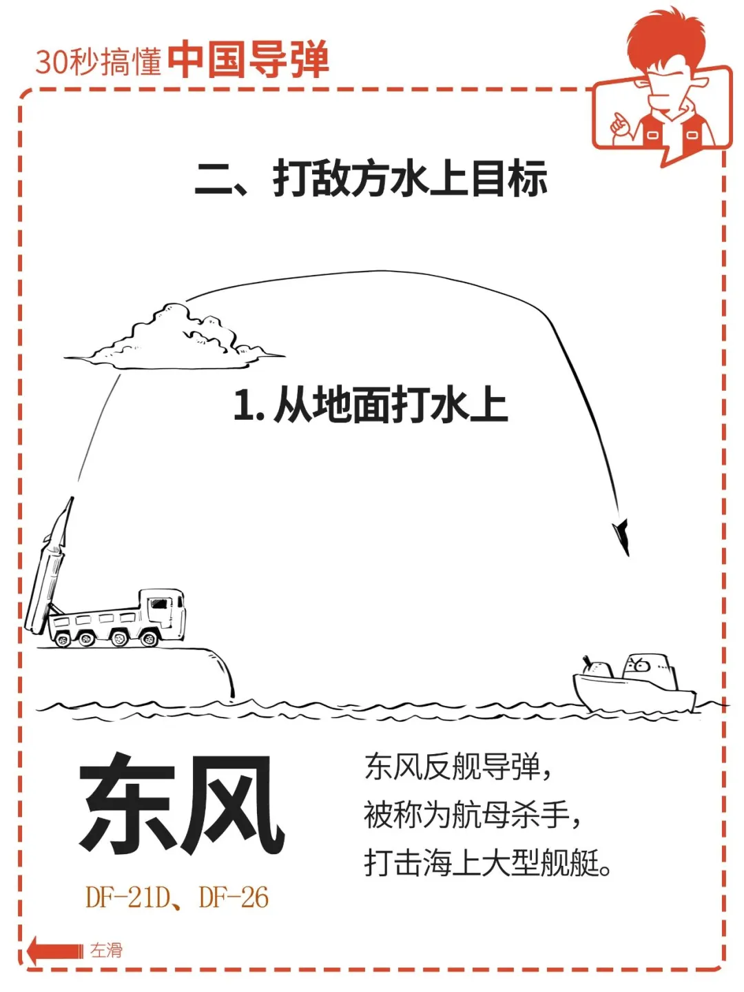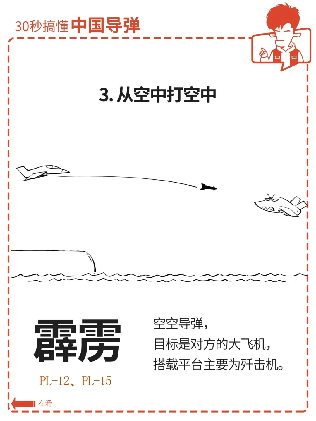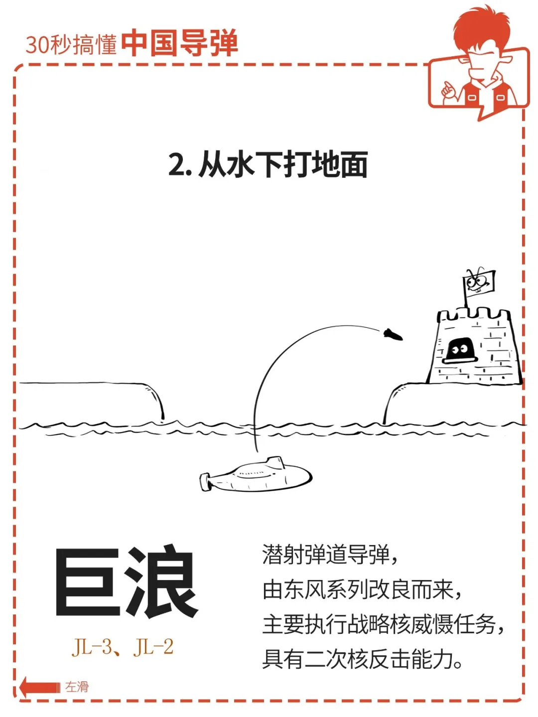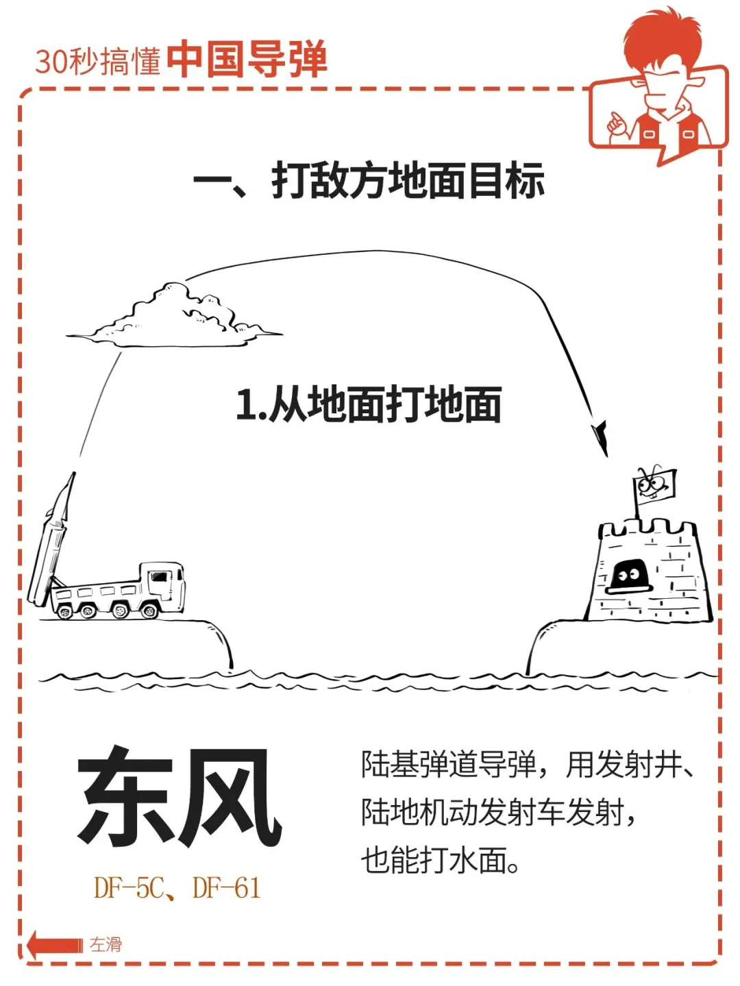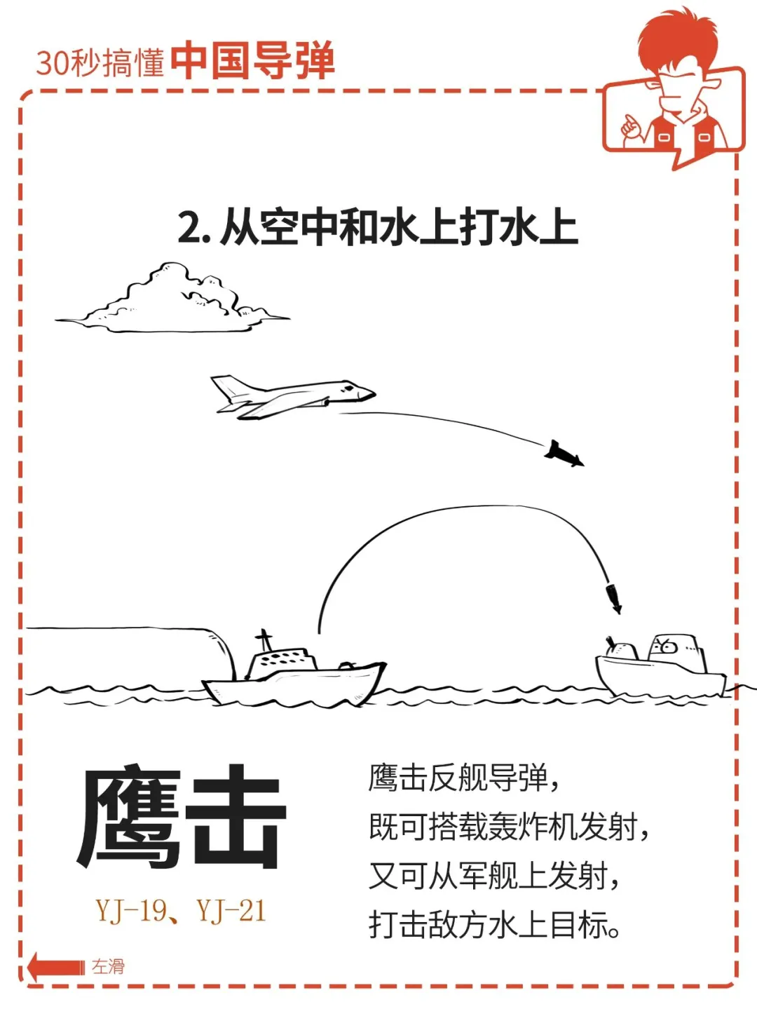 两天看阅兵的时候,各种亮眼的装备,是不是给了你亿点点震撼? 这些大国重器,展现出了我国国防科技硬核实力,其中就有多款导弹,它们被誉为“中华利剑”。 那么你有没有想过一个问题:我国的导弹家族庞大,包括很多系列,比如东风、惊雷、巨浪、鹰击、红旗……它们各自有什么作用?又有啥区别? 今天混子哥就用 30 秒,带你搞懂各种中国导弹。点击图片,看清晰大图,方便保存、转发。转载请注明出处。