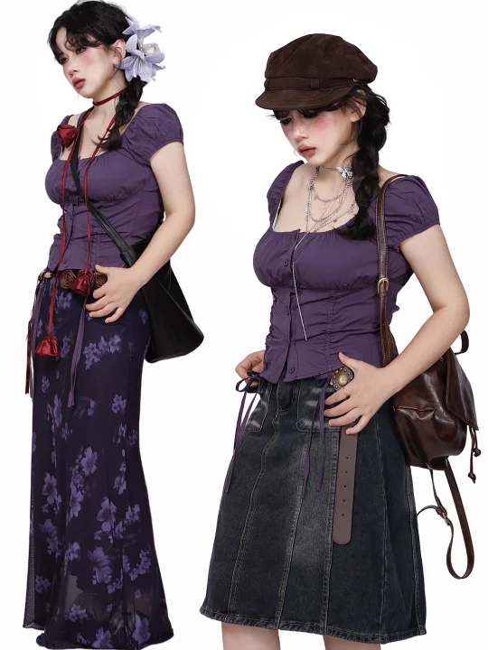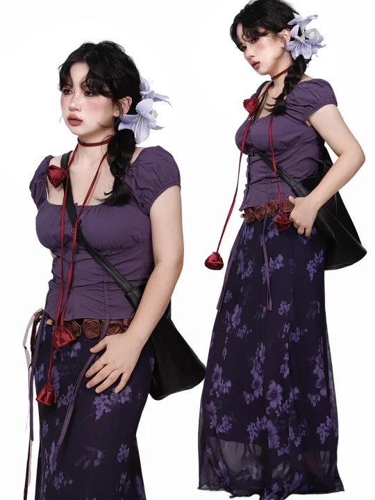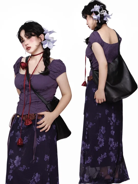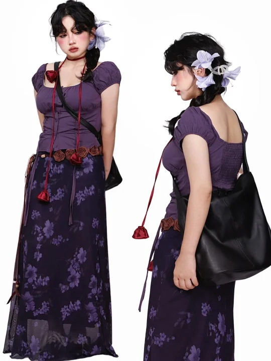 *复古艺术生look💜绝绝紫小衫✖️碎花长裙~
