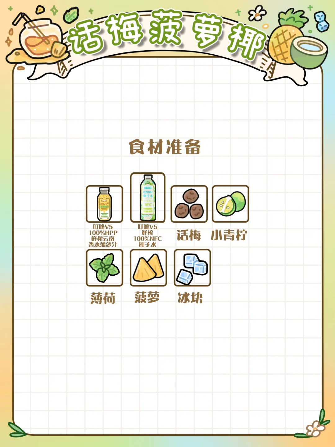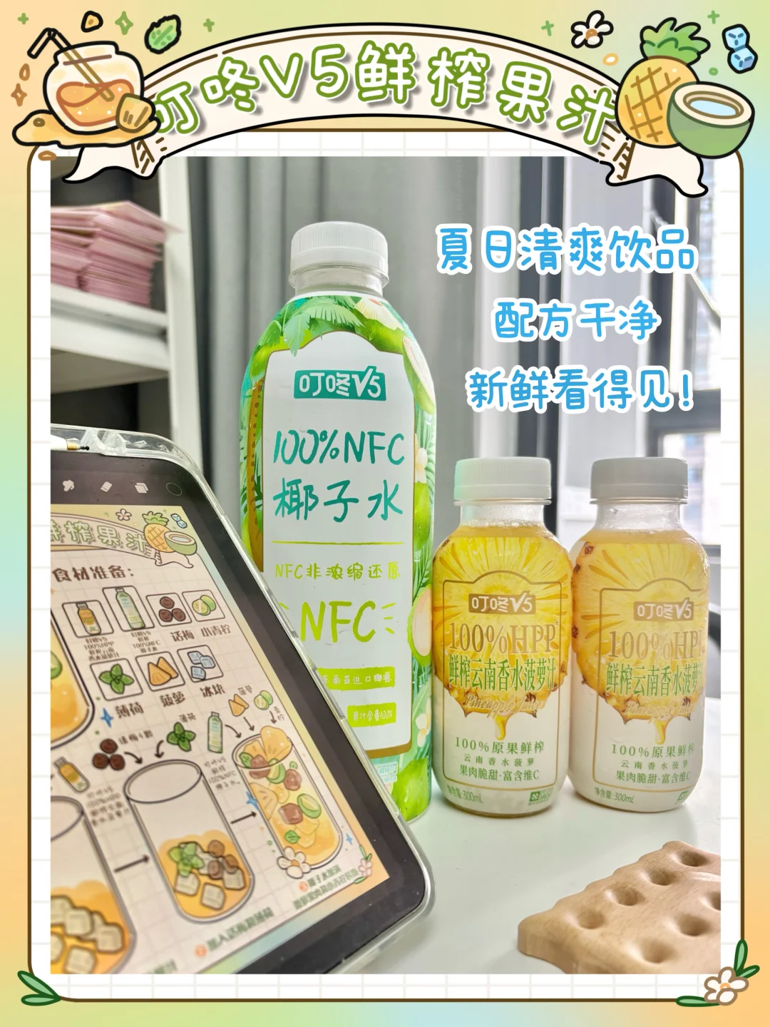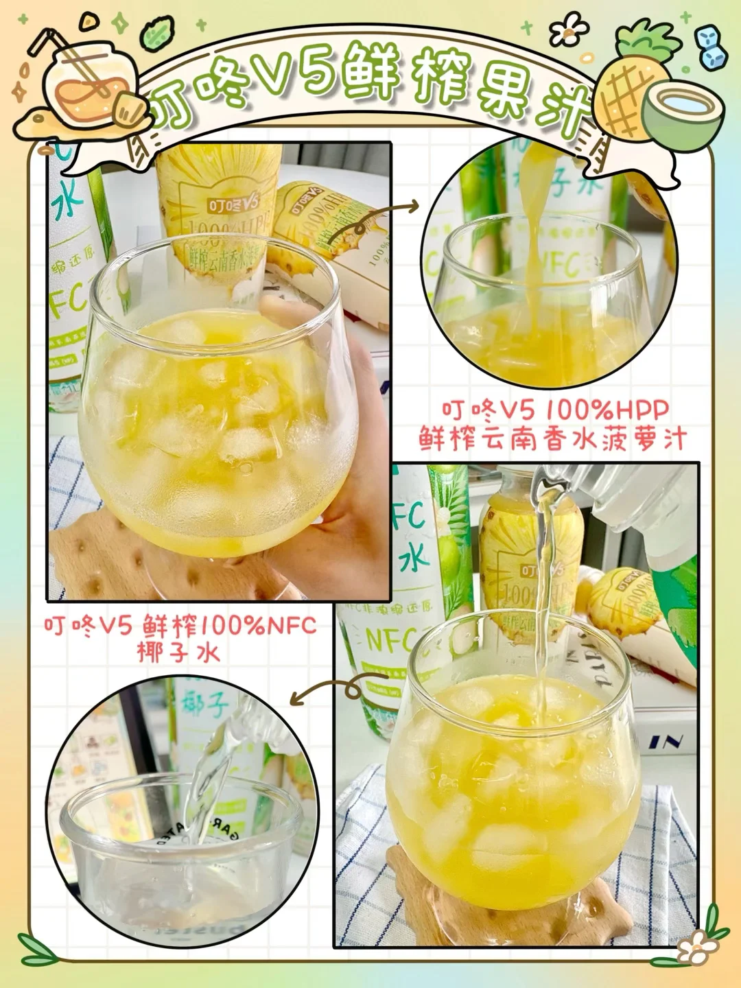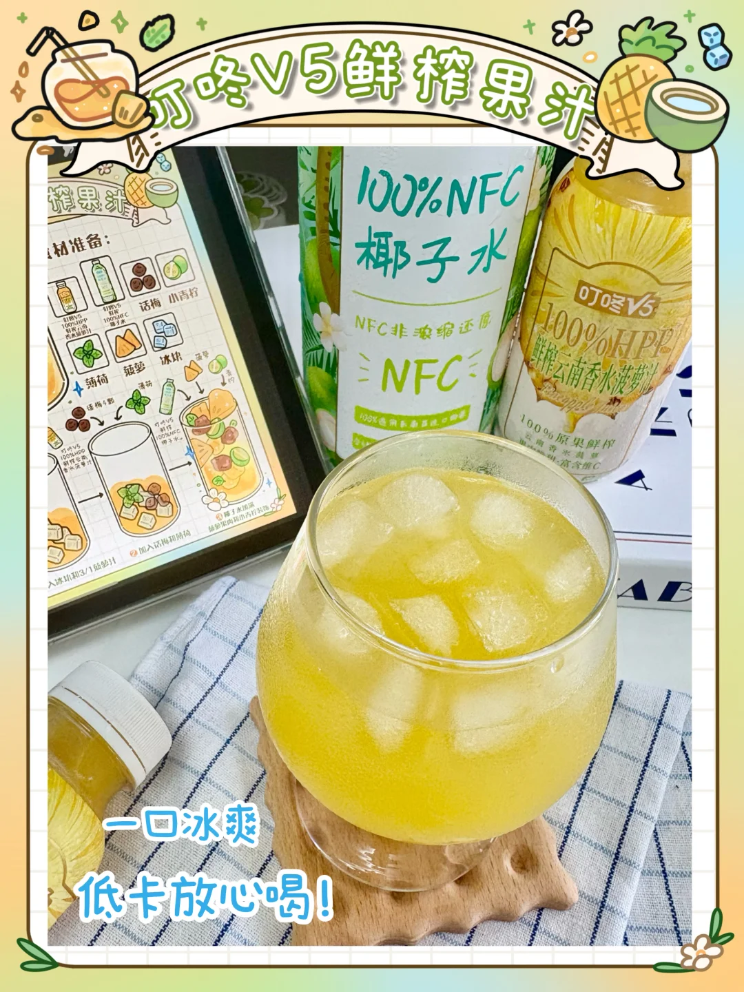 叮咚V5 100%HPP鲜榨云南香水菠萝汁|叮咚V5鲜榨100%NFC椰子水|话梅|薄荷🍃|菠萝🍍|小青柠🍋🟩|冰块🧊