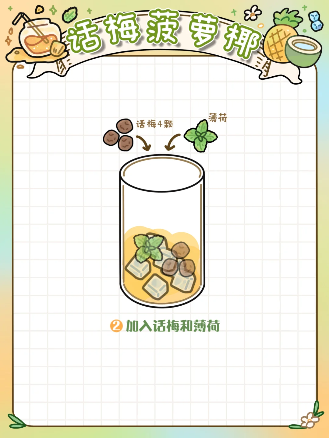 仙女对夏日饮品的要求不仅好喝必须颜值高🧚♀️那就快快和柚子一起学习这个🧊清爽解暑拿在手里还超出片的🍍话梅菠萝椰吧💖