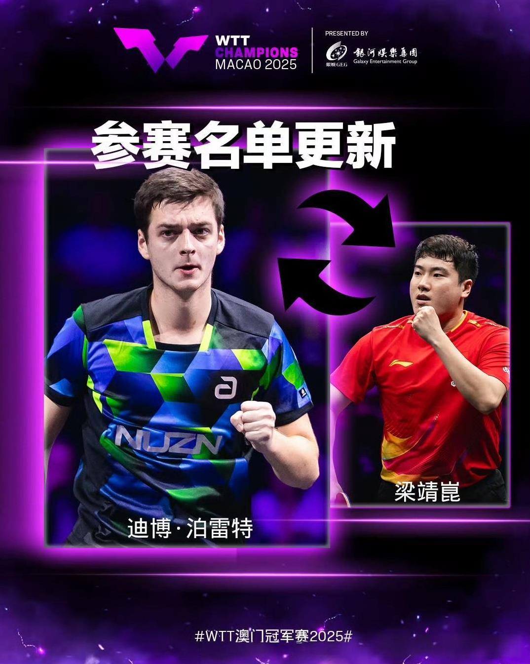 梁靖崑又退赛了,这样看应该是腰伤还没好。 梁靖崑乒超联赛腰受伤,接连缺席两场大赛,林高远参赛名单也没有,这样林高远和梁靖崑双双缺席冠军赛。 国乒小将也还不稳定,只能林诗栋和王楚钦各自守半区。 澳门冠军赛好在只有单打,这样没那么辛苦,期待林诗栋和王楚钦能最终会师总决赛。 梁靖崑不会是想因伤退役吧,看志强都带队二线队员了,或许老将真的要做选择了。 图片来自网络侵权可删。