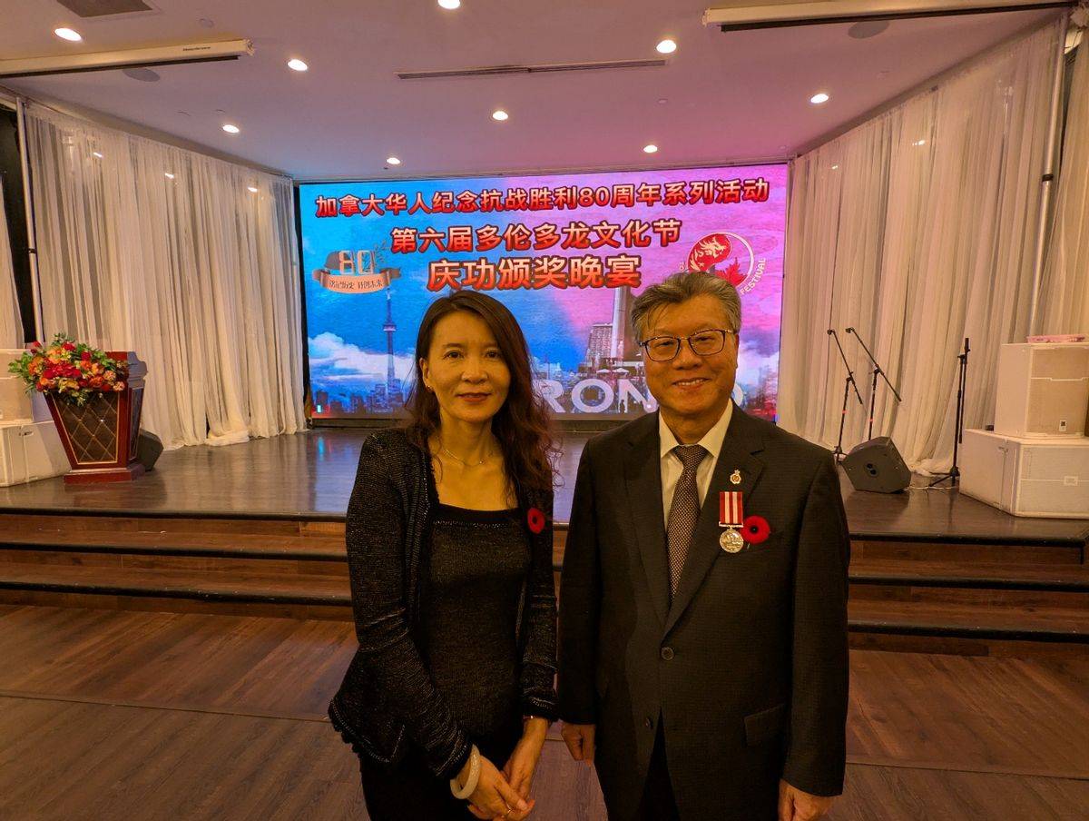 2025年11月5日,由第六届多伦多龙文化节暨纪念世界反法西斯战争与中国人民抗日战争胜利80周年系列活动组委会主办的庆功及颁奖晚宴在多伦多举行。加拿大共工新闻社社长孙瑞祥教授采访中国驻多伦多旅游办事处主任武宁女士 。