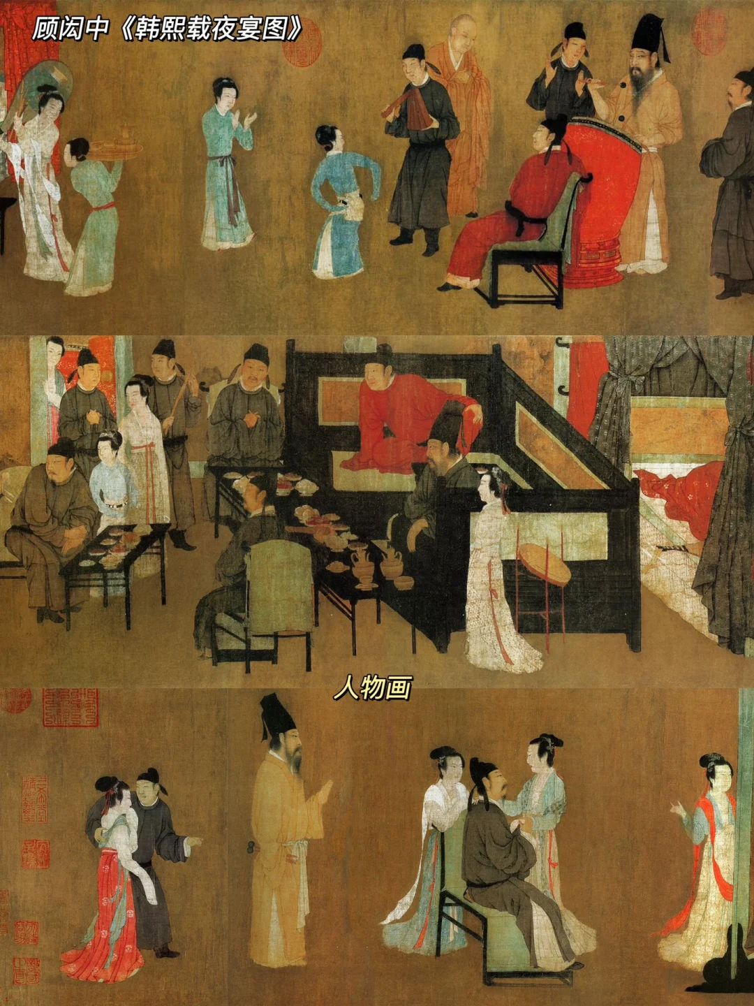 其中,✨顾闳中为南唐后主画院的画家,他贡献出了最著名的《韩熙载夜宴图》,将不愿为相,躲于家中纵情歌舞的韩熙载,以五段式绘画展示于天子李煜面前。