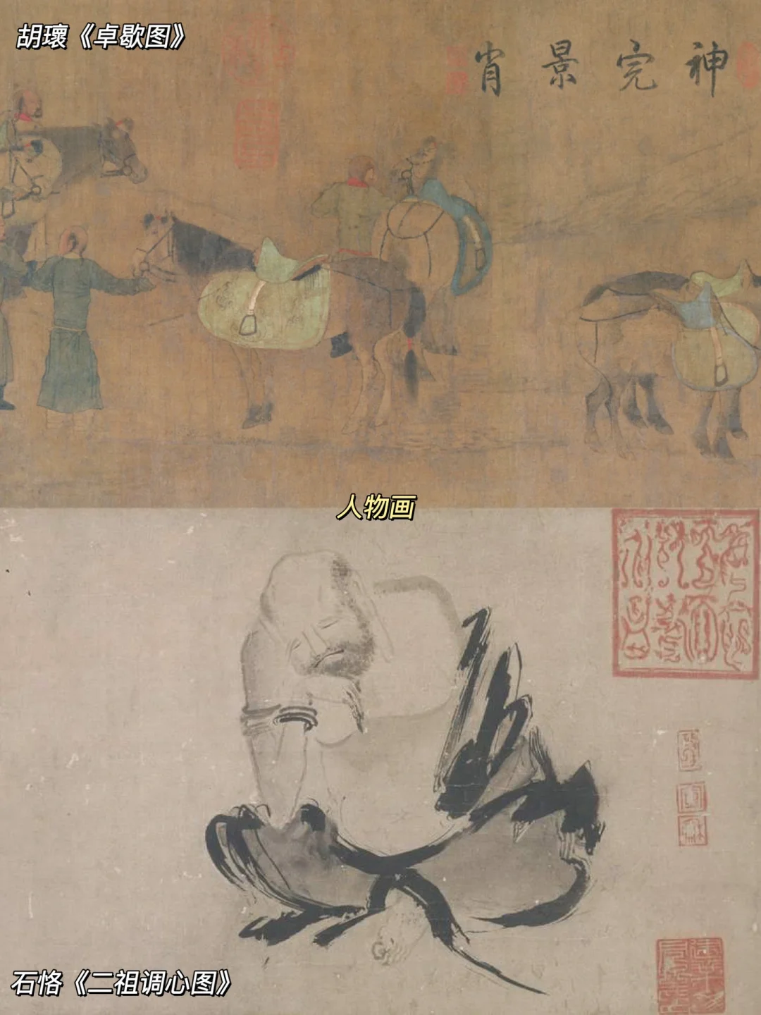 👸🏼五代人物画题材广泛,有沿袭唐代的贵族、仕女画,有北方女真族人的风俗画,还有以僧人为原型的佛教罗汉画。