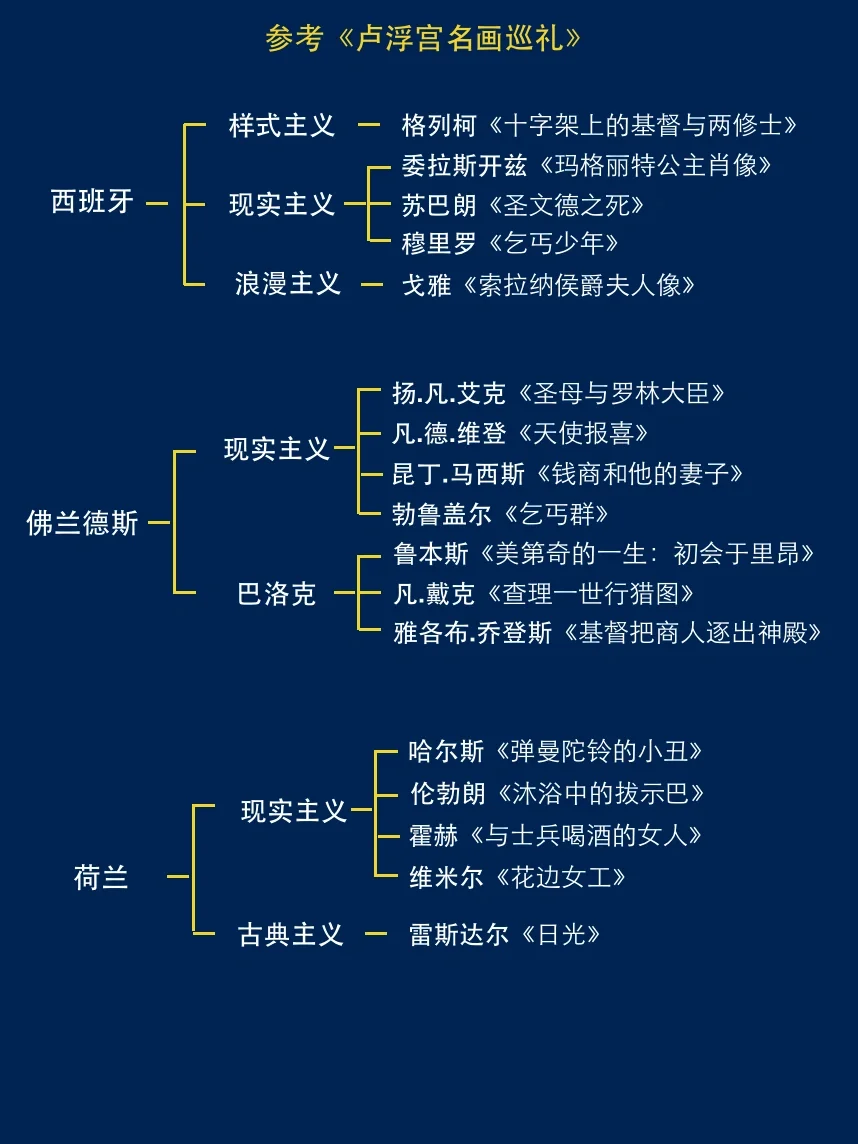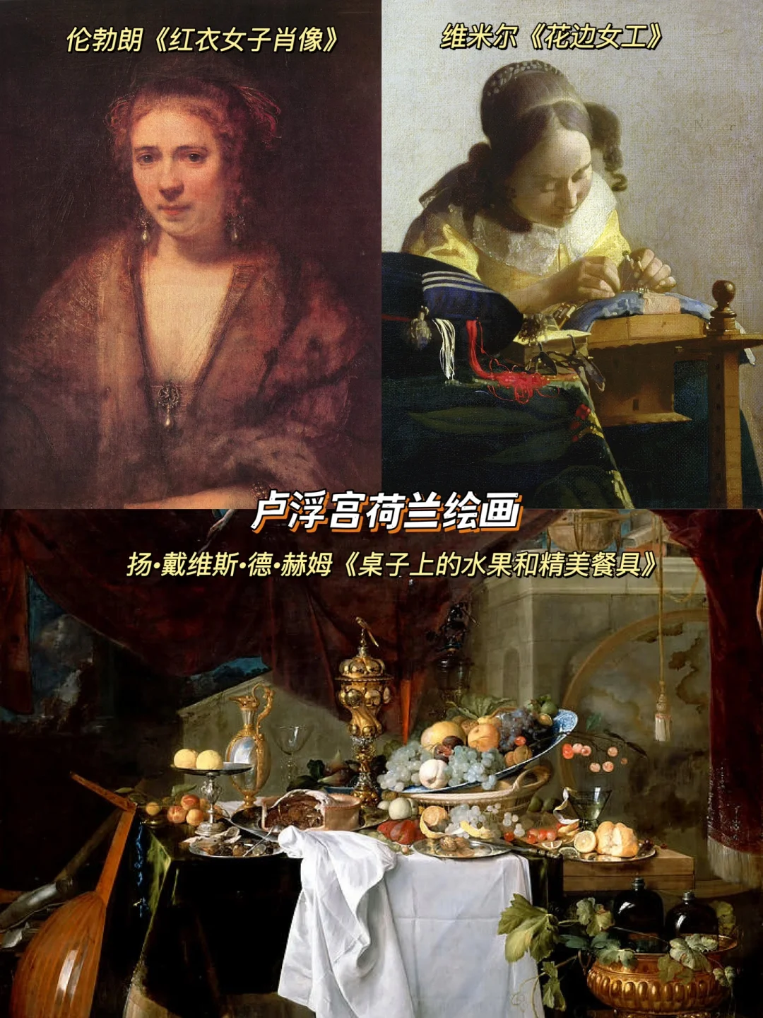 🎨最后再说下荷兰,虽然它的绘画热潮仅维持在17世纪,但却诞生了许多大师,比如团体肖像画家伦勃朗、静物画家赫姆、风俗画家维米尔以及风景画家雷斯达尔。