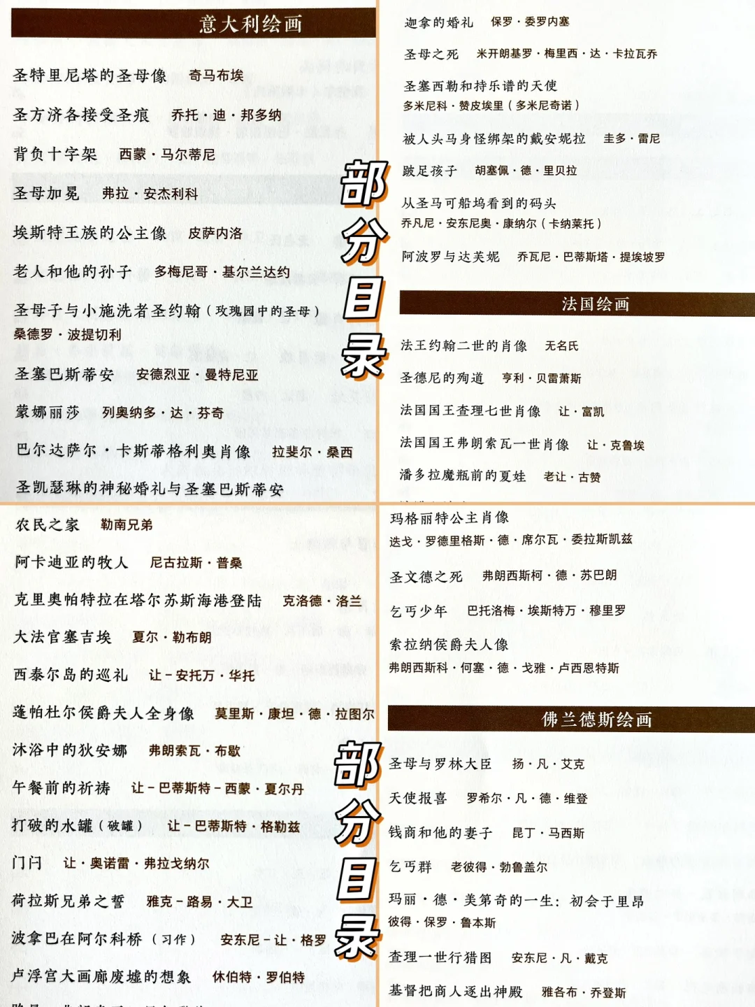 🔸这本书结合历史和艺术背景,详细解读了意大利、法国、西班牙、弗兰德斯、荷兰五国的64位名家经典作品。