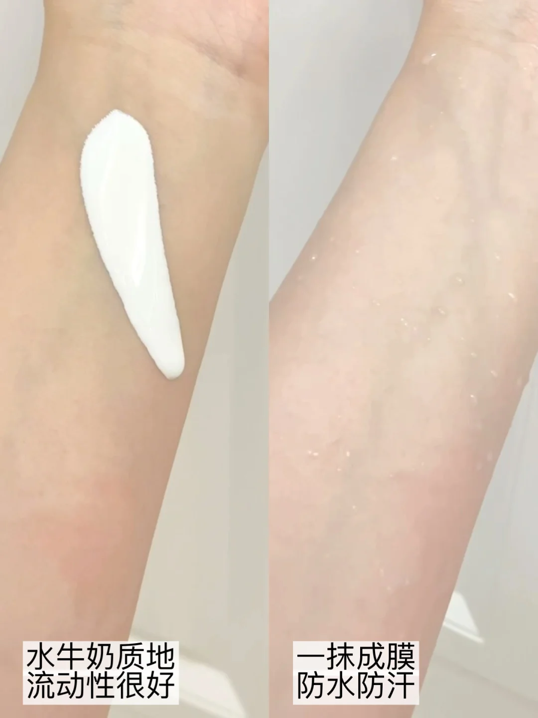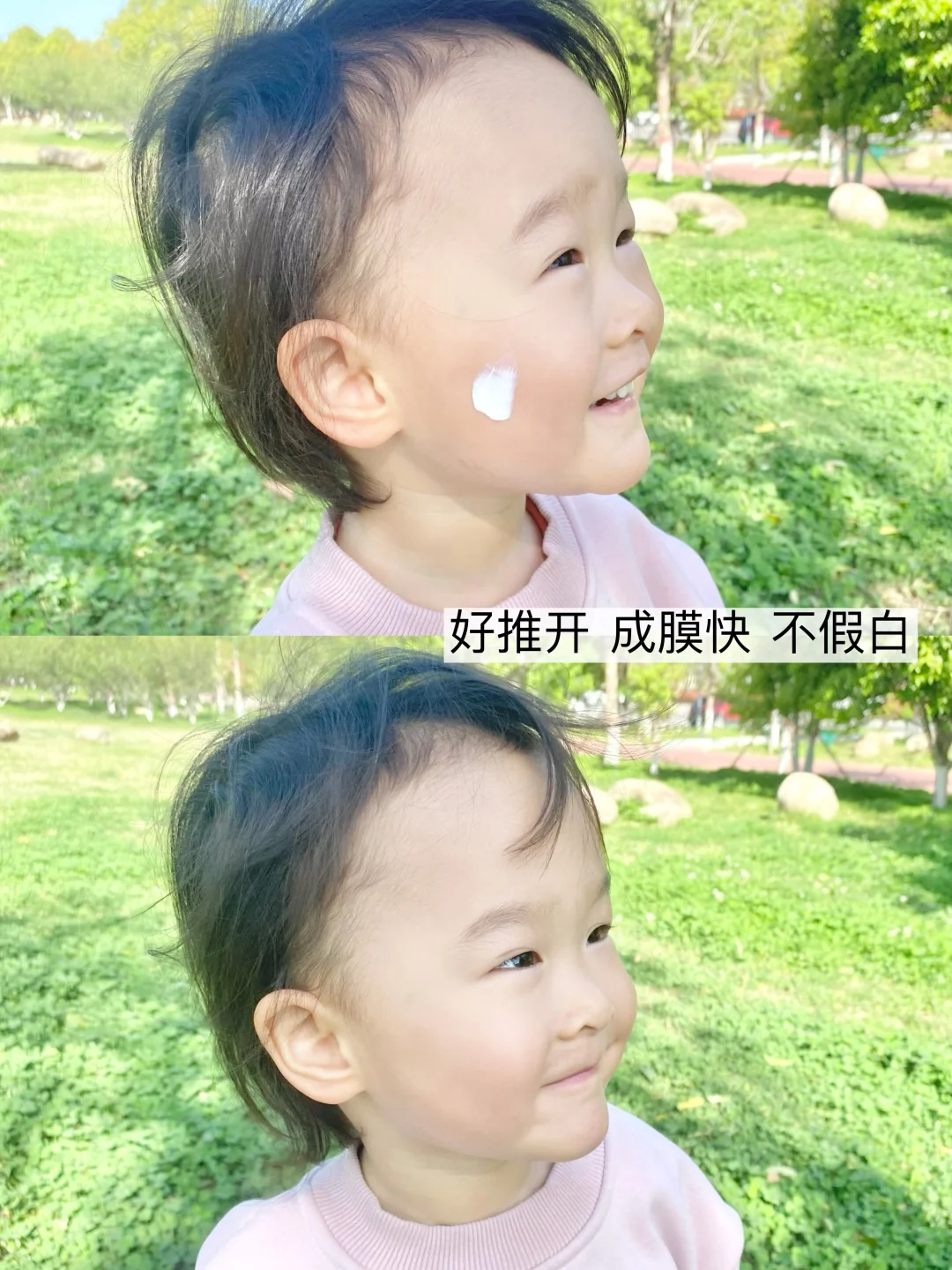水润乳液质地成膜快,不搓泥不假白,清清爽爽的~而且防水防汗,不怕孩子玩成大花脸!