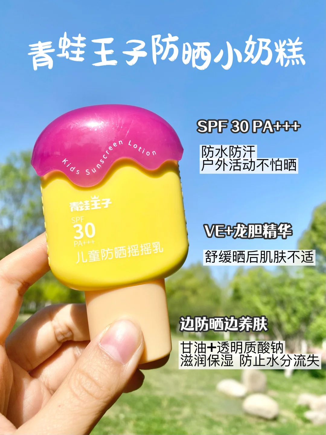 今年提前给我娃安排上了青蛙王子防晒小奶糕,造型嘎嘎可爱,小盖子遇到紫外线会渐变成紫色,这个时候就要给宝宝涂防晒啦~