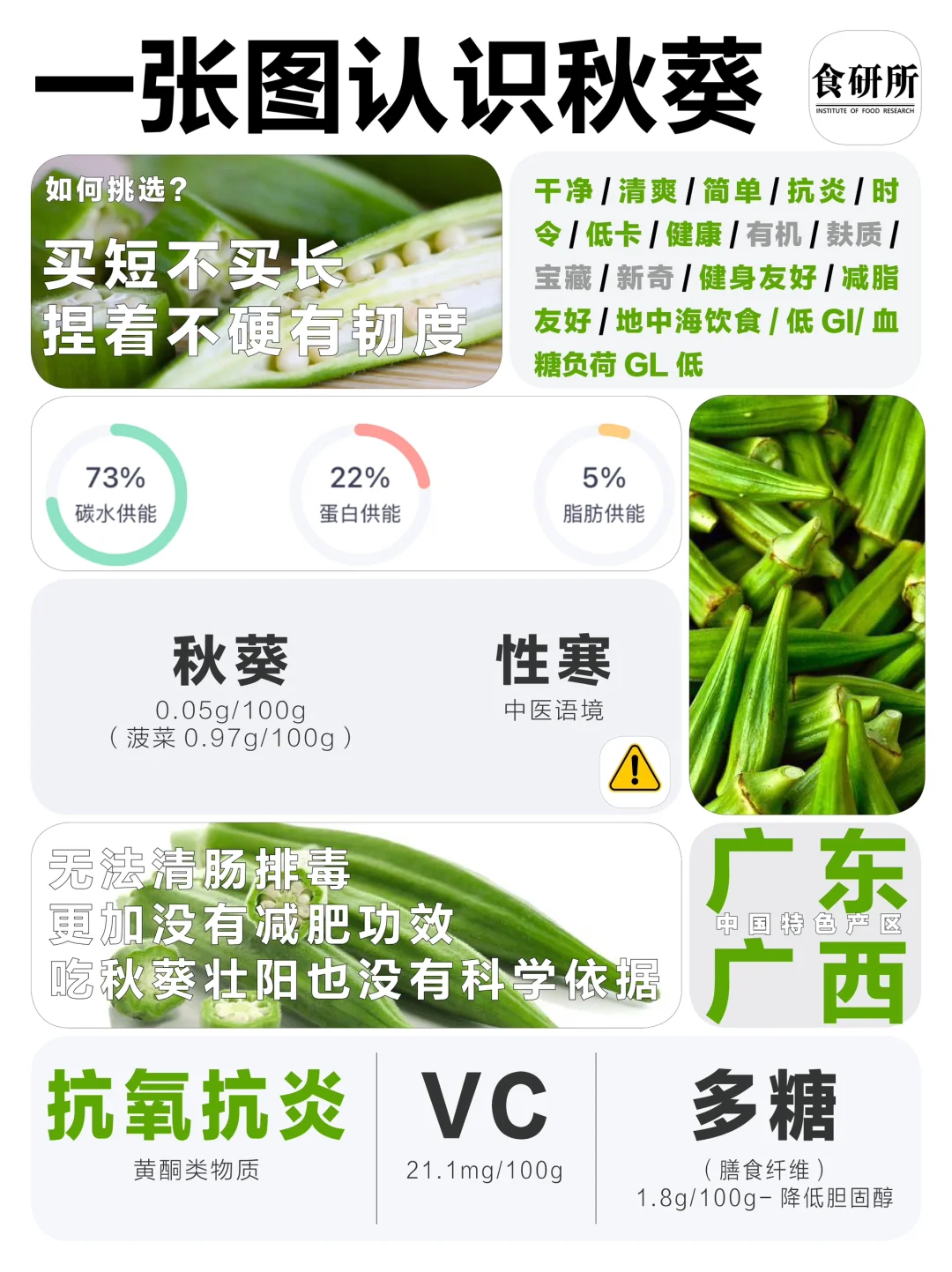 [氛围感R]秋葵无法清肠,更加没有减肥功效;吃秋葵壮阳也没有科学依据;此外,吃秋葵降不了血糖