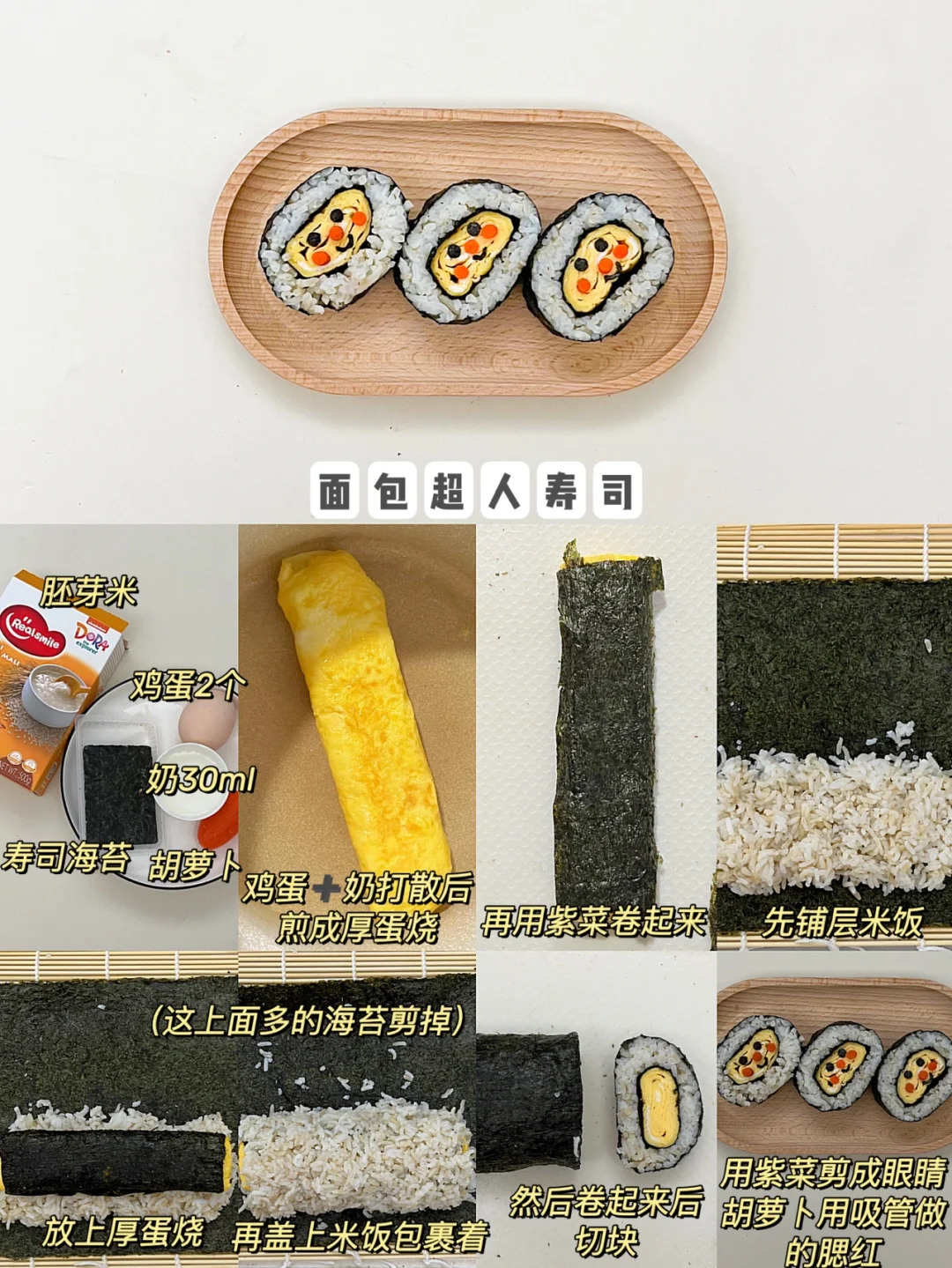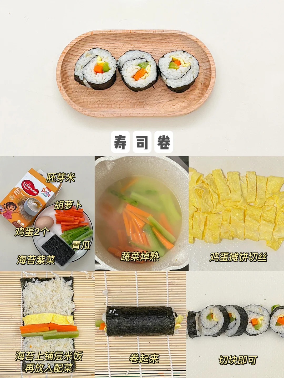 😃前两天跟娃他爸出去吃寿司,可给我儿子馋坏了。第二天就安排上~做法真的很简单啊!好看又好吃,关键还很营养。直接解决了宝宝不爱吃饭的问题[斜眼R]