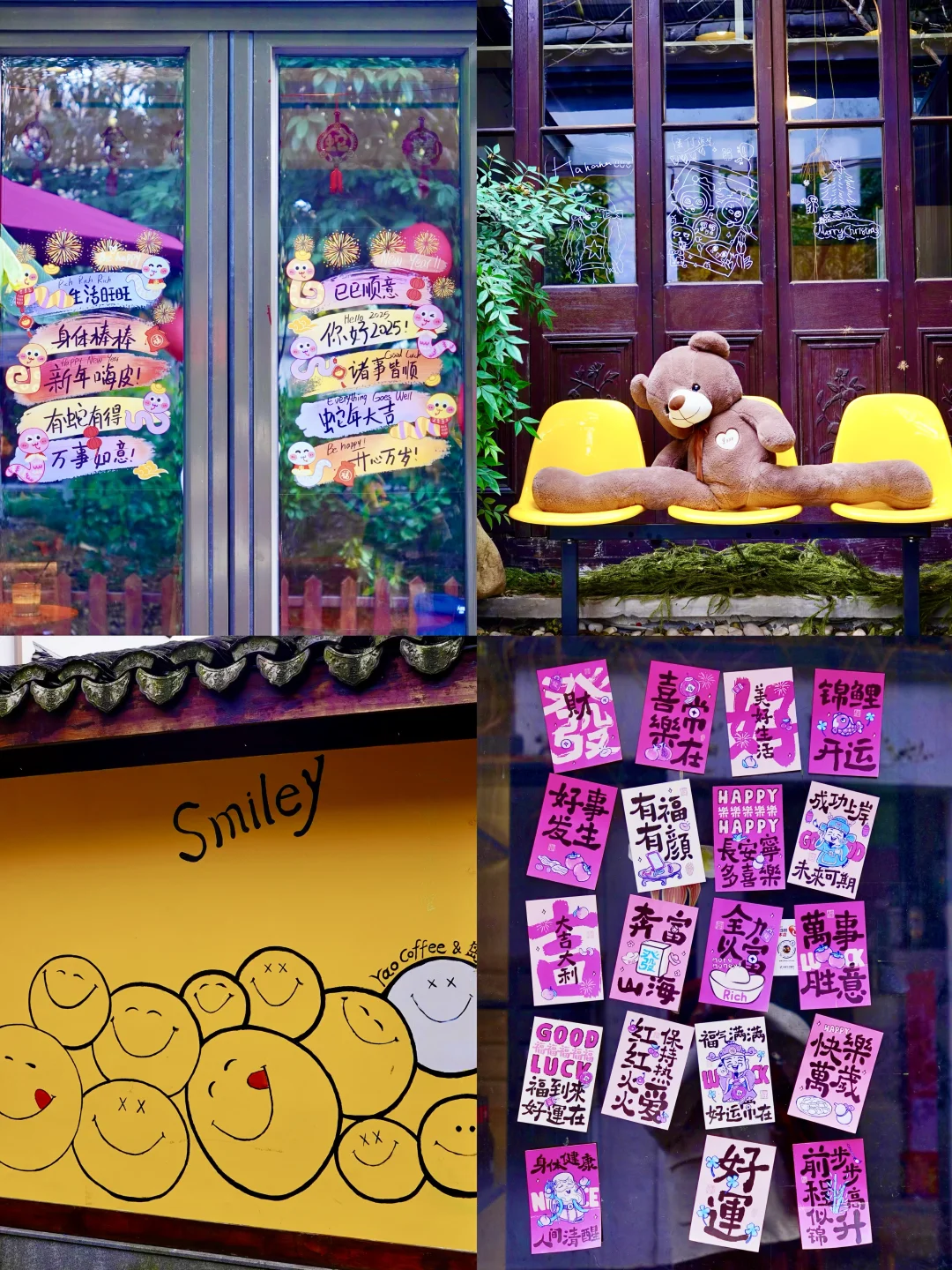 春风茶馆🍵门口的年味装饰很好看,梧桐大道拍照也很好看,沿途有很多美食店。