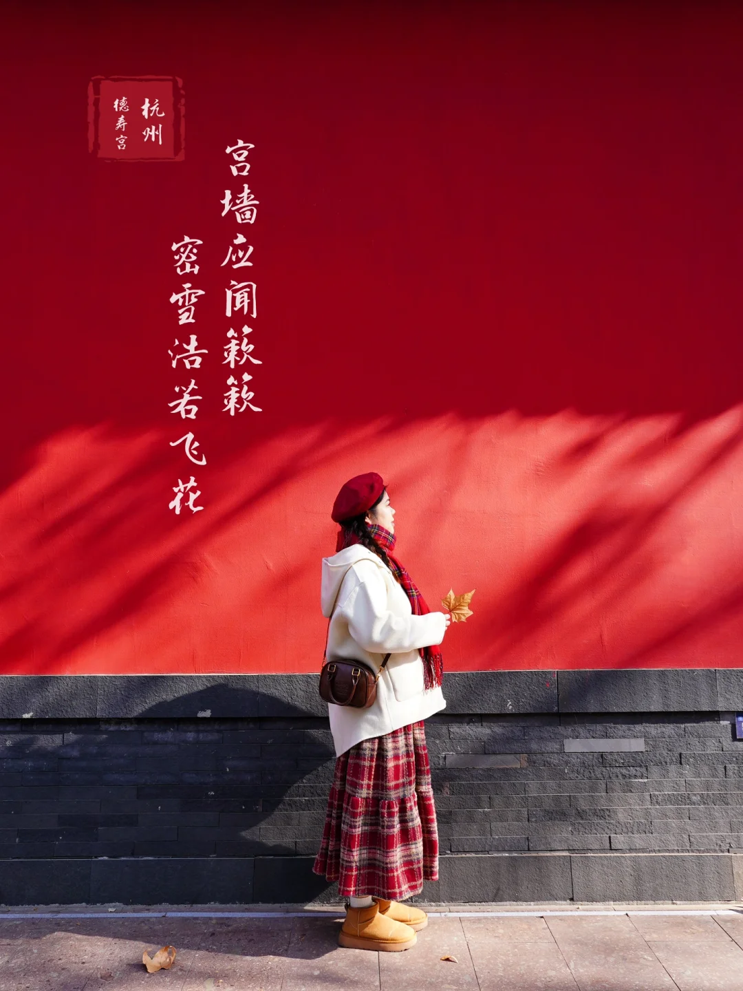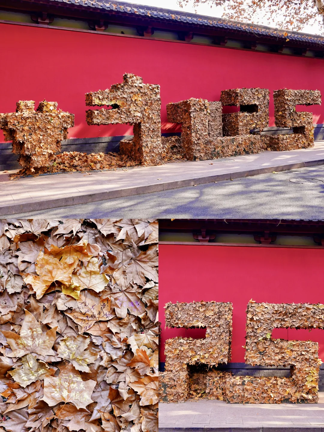 德寿宫北出口的红墙简直是年味当担,阳光☀️洒在红墙上光影斑驳,拍照很出片!📸还有落叶🍁新年装饰,创意十足!入内参观可在gzh免费预约!📅