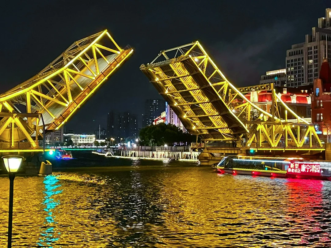 时隔三年,解放桥将再次张开双臂,迎接来自各地的游客,将于5月1日晚20:30-22:00再次开启🎉,五一假期来津的宝子们,千万不可错过这道难得一见的景观哦[自拍R]。