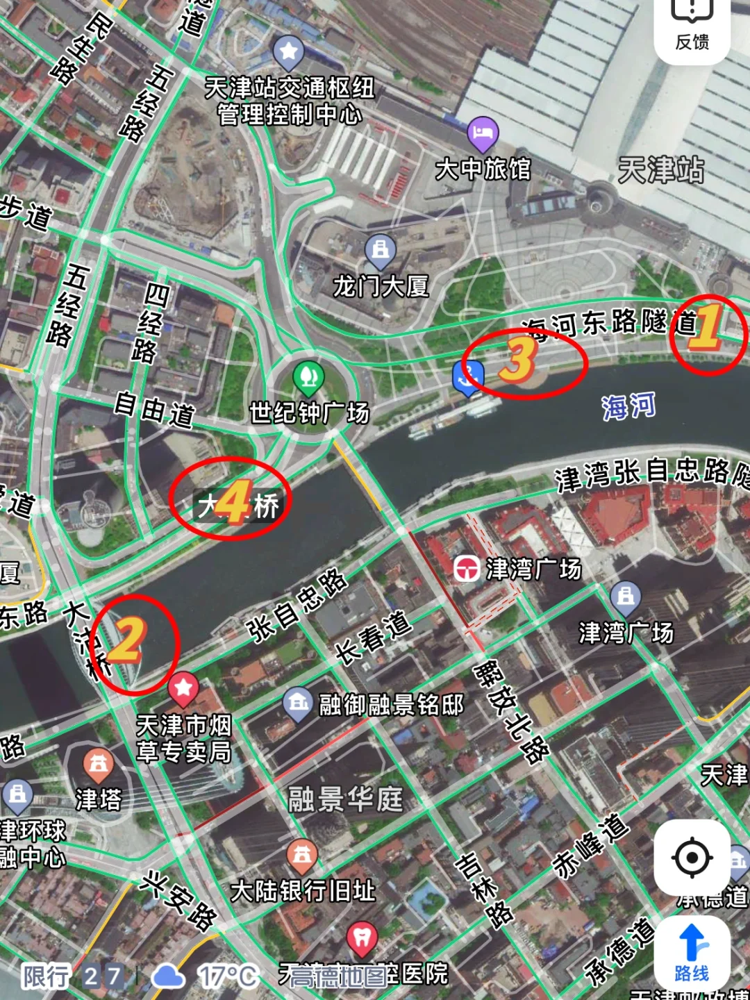 [一R]海河东路隧道口步行道边,正对解放桥东面,可以拍摄与大沽桥与津门同框的经典画面,这也是海河最美角度之一。