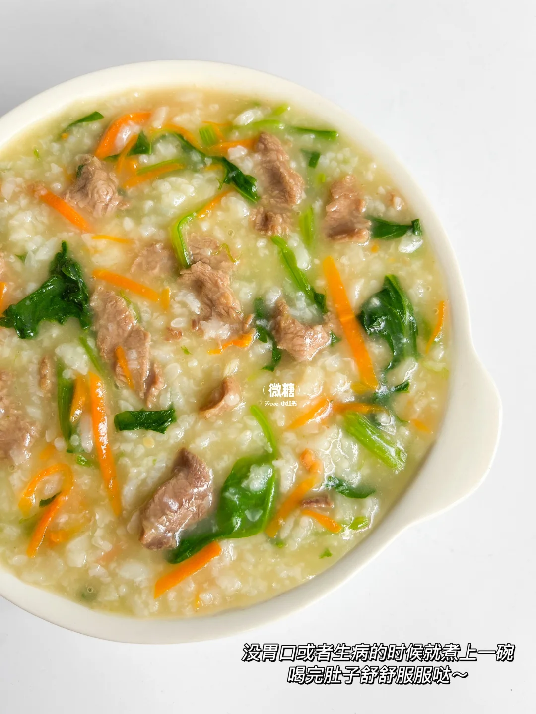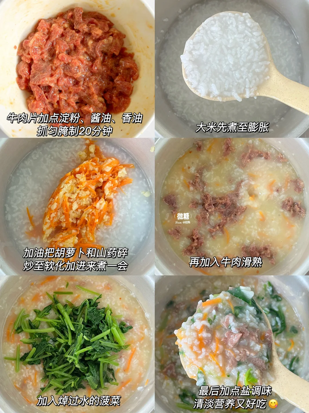 今天分享一碗我儿子很喜欢的山药菠菜牛肉粥‼️每周我都会煮两三次,当作早晚餐特别好!营养好消化✅像有时候孩子积食吃多了,生病没胃口,天热食欲差的时候,就特别适合煮这碗粥喝👌🏻鲜美清淡,加了铁锅山药健脾养胃,牛肉和菠菜补铁🥰软糯可口,营养和口味上都一整个拿捏‼️
