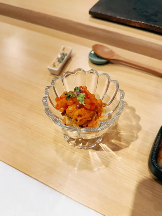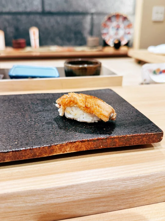 托小伙伴的福, 抢到了九月Taneda的位置 整套下来是 20+道, 开头就是甜点➕蟹饼汤 接下来就是各种鱼生… 最喜欢甜甜的鱼籽海胆饭🍚 时间刚刚好,一个半小时吃完 还来得及回家哄娃睡觉~ 💰预约时服务费就付好了,9水现场另点 📍地址:sumo隔壁 在房子里面